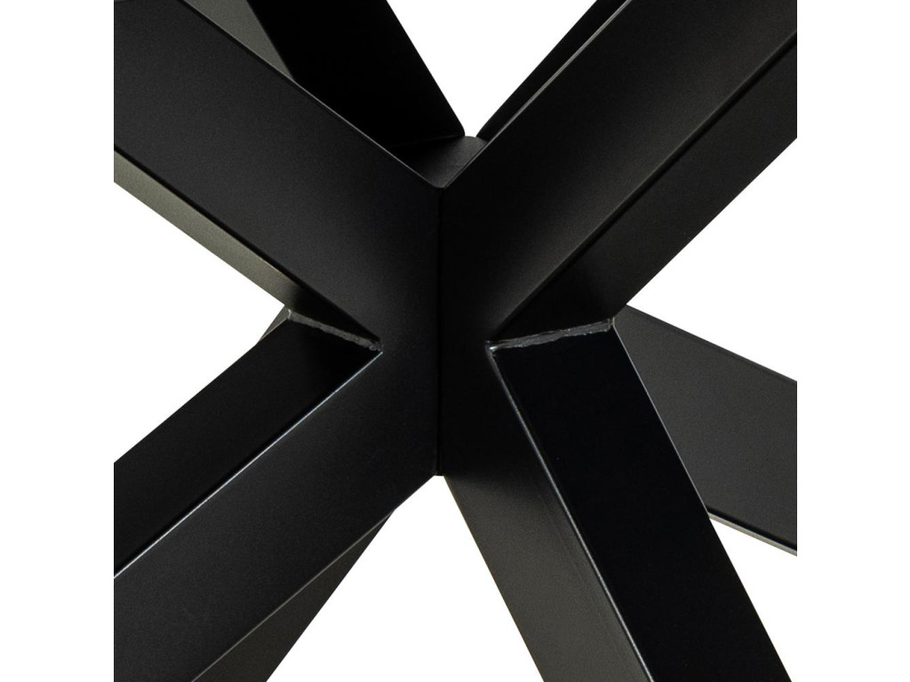Vďaka integrovanému synchrónnemu výsuvu možno stôl rýchlo a pohodlne rozšíriť z 200 na 240 cm. Výsuvná časť je uložená automaticky pod doskou, čo zabezpečuje jednoduchú manipuláciu a čistý vzhľad. Stabilitu a vizuálnu oporu mu dodáva 4-ramenná podnož z matnej čiernej ocele s hrubou práškovou povrchovou úpravou.