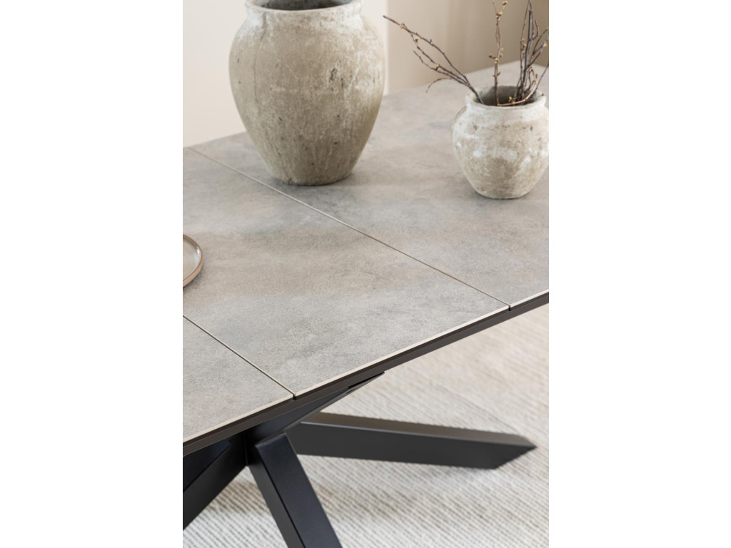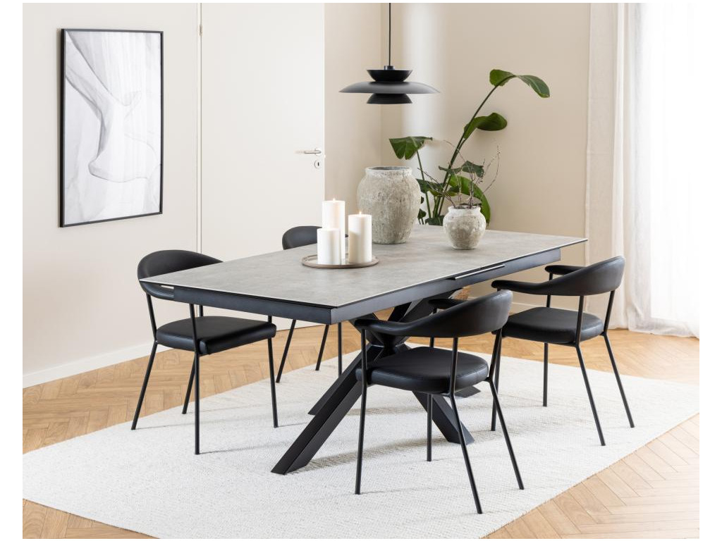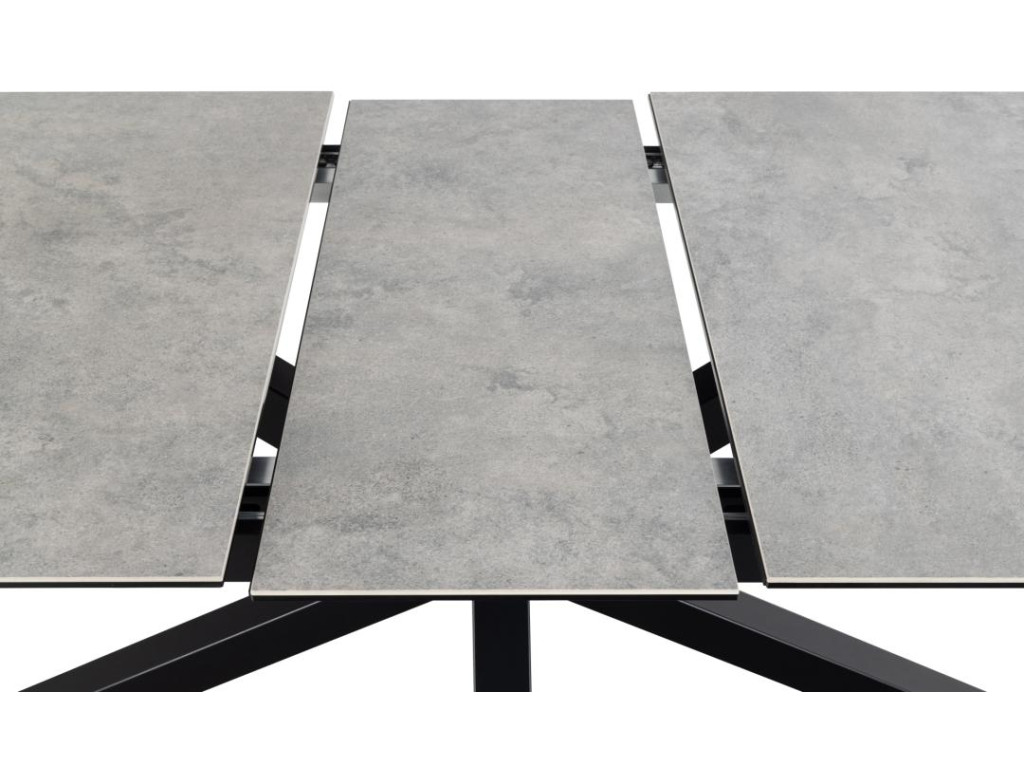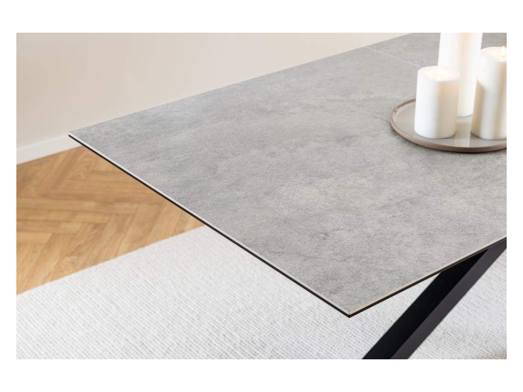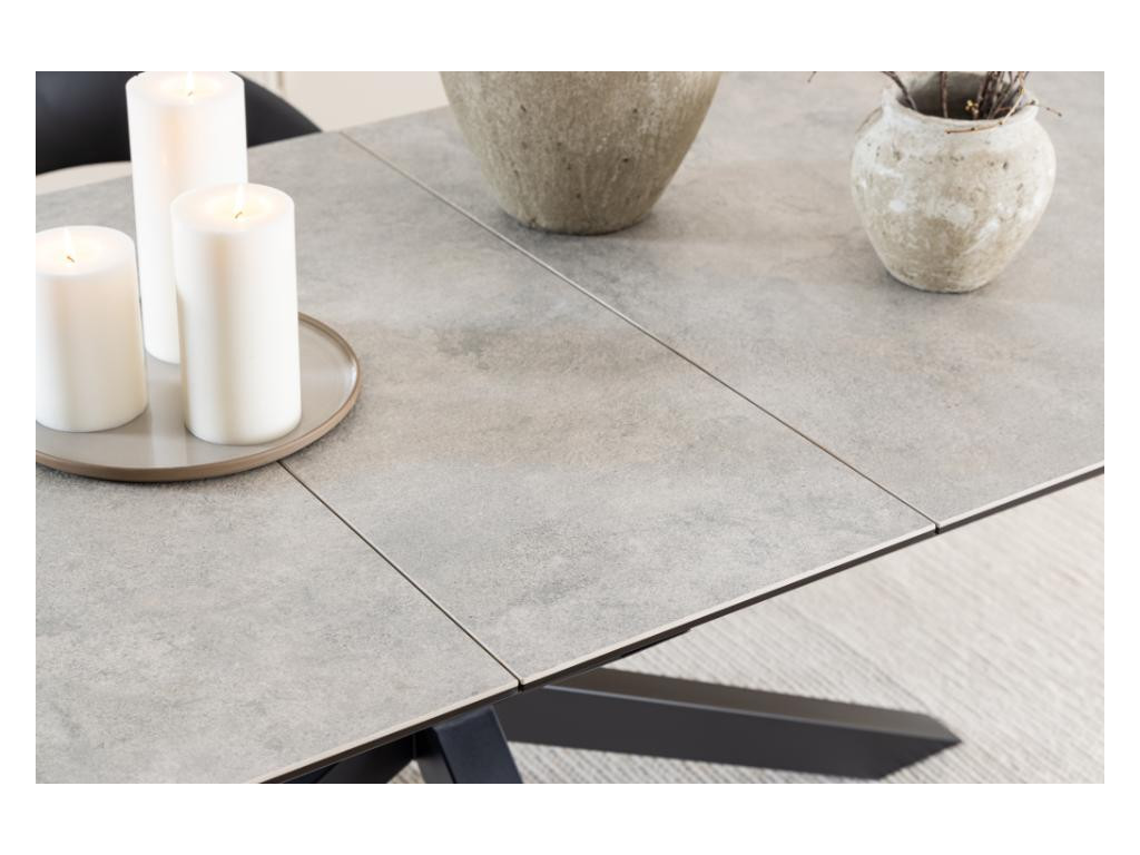 Stôl Heaven je rozkladací jedálenský stôl s modernou funkčnosťou a estetickým prevedením. Vrchná doska zo sivej keramickej vrstvy Anista pôsobí moderne a odolne. Krížová čierna oceľová podnož zaisťuje stabilitu. Synchrónny rozkladací mechanizmus s úložným priestorom umožňuje jednoduché predĺženie z 200 na 240 cm. Ideálne riešenie pre väčšie rodinné stretnutia.