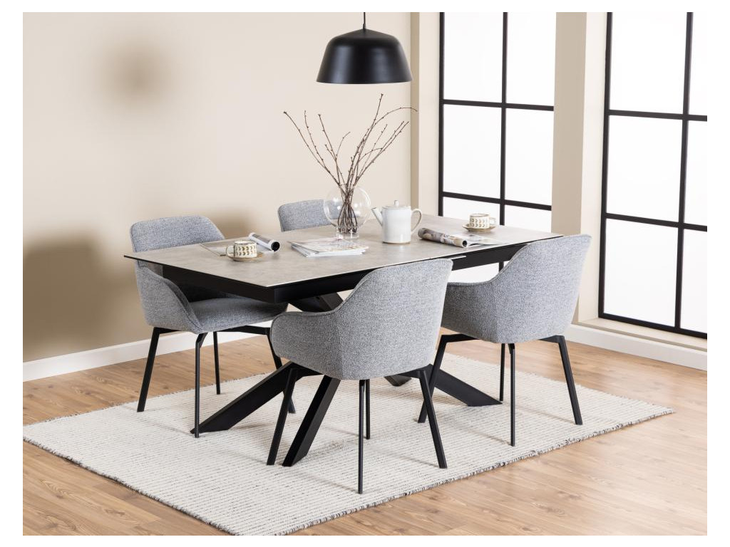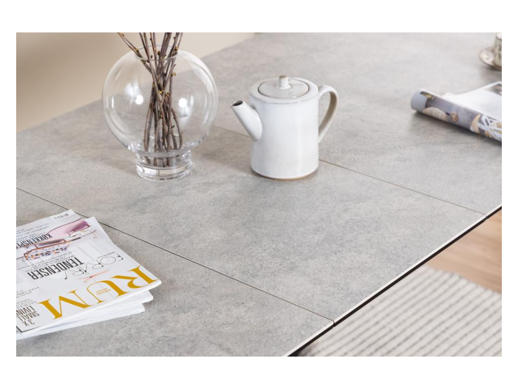 Irwine stôl v sivom prevedení ponúka priestrannosť a elegantný vzhľad. Vďaka rozkladaniu ho ľahko prispôsobíte potrebám vašej domácnosti. Keramická doska je odolná a ľahko udržiavateľná. Vhodný do moderných interiérov s dôrazom na detail.