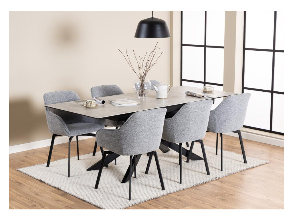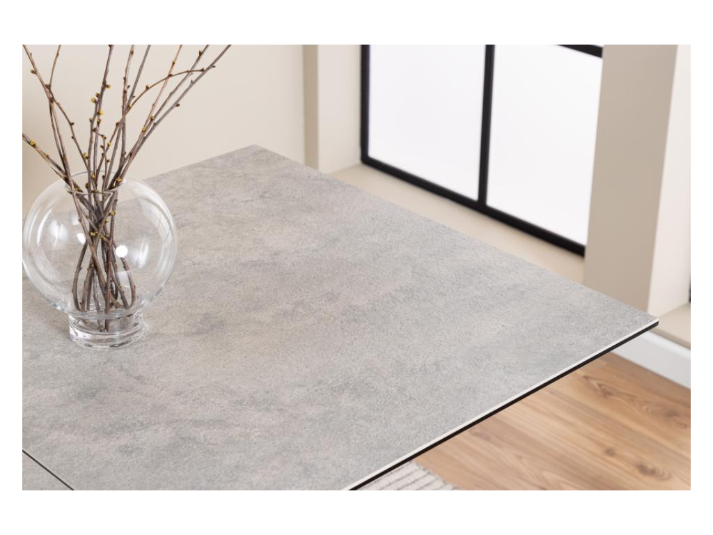 Sivý variant Anista stelesňuje sofistikovaný minimalizmus. Vďaka drsnej keramickej doske s prírodným vzhľadom je stôl nielen krásny, ale aj praktický. Synchrónny výsuv umožňuje rýchle rozšírenie priestoru a jeho čierna oceľová podnož poskytuje kontrast aj stabilitu. Ideálny na každodenné stolovanie či rodinné oslavy.