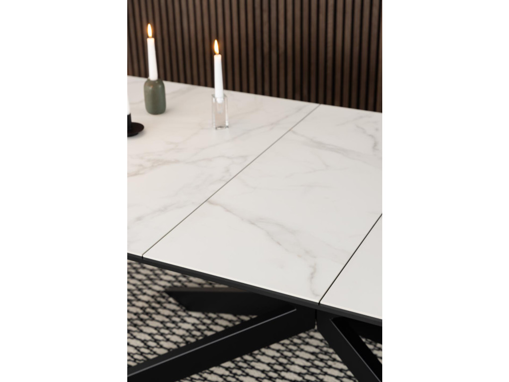 Rozkladací jedálenský stôl Irwine 200/240 - biely mramor / čierna