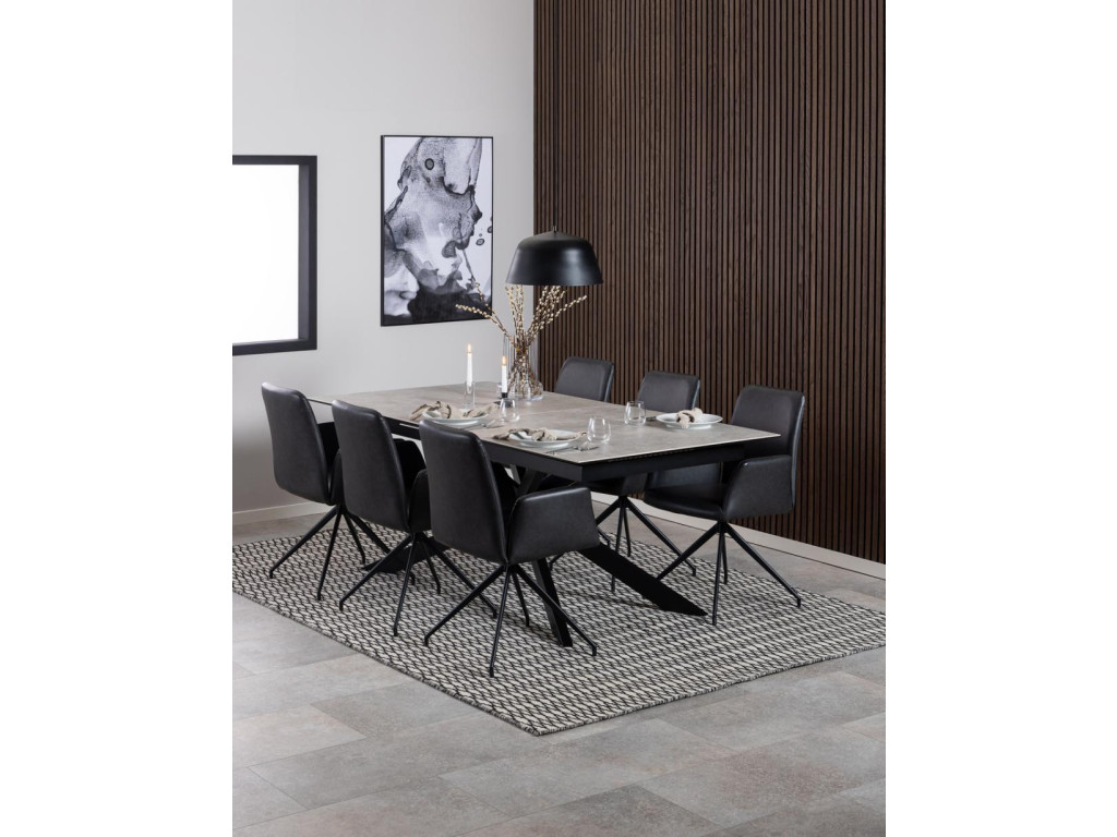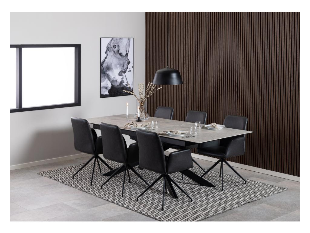 Veľkorysý rozkladací stôl Irwine ponúka moderný vzhľad a praktickosť. Hranatá keramická doska v elegantnej sivej farbe pôsobí luxusne a je zároveň odolná. Vďaka synchrónnemu rozkladaniu sa jednoducho prispôsobí počtu hostí. Stabilitu zabezpečuje masívna čierna oceľová základňa.