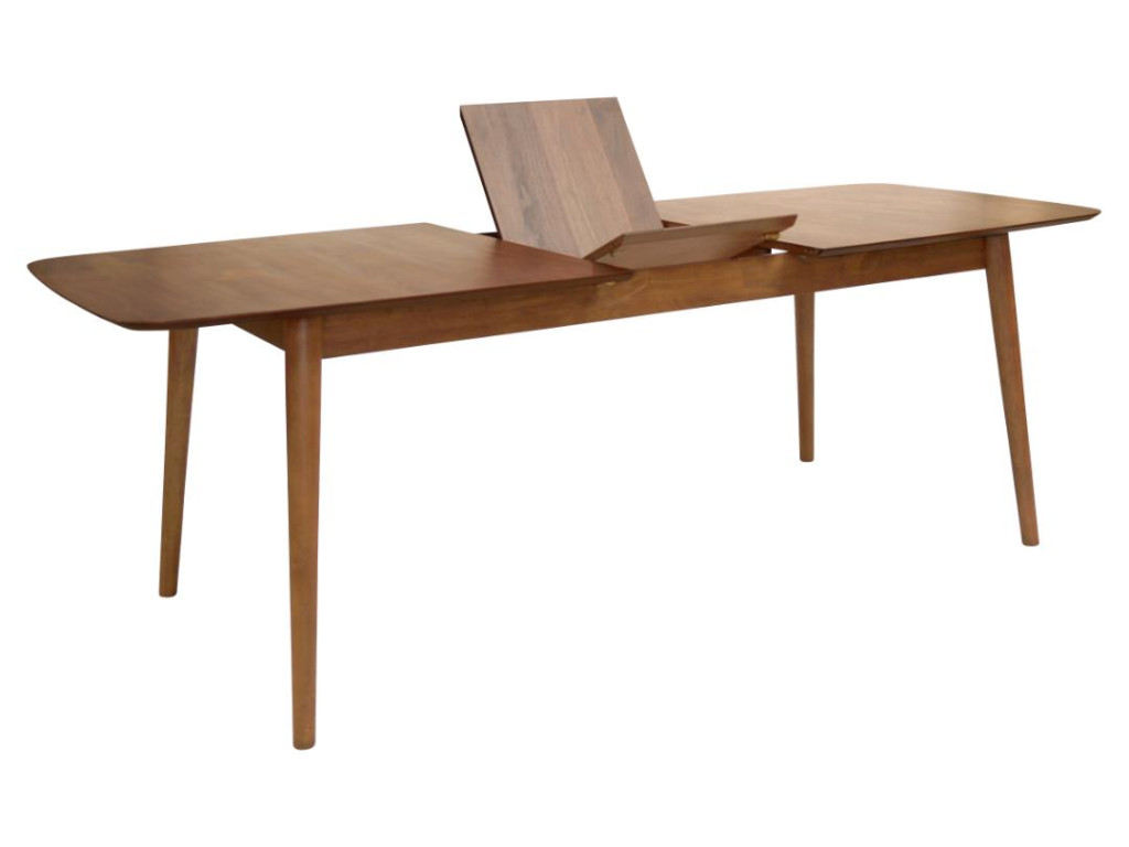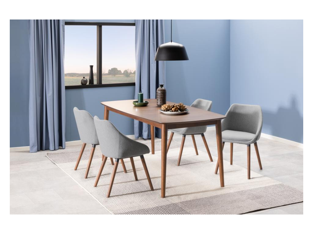 Elegantný rozkladací jedálenský stôl s jemne zaoblenými hranami a teplým orechovým tónom okamžite vytvorí príjemnú atmosféru v jedálni. Vďaka motýliemu predĺženiu ukrytému v tele stola možno ľahko rozšíriť plochu až na 219 cm, čím sa pohodlne usadí aj väčšia spoločnosť. Konštrukcia z masívneho kaučukovníka a dyhovaná doska zaručujú stabilitu a jednoduchú údržbu.