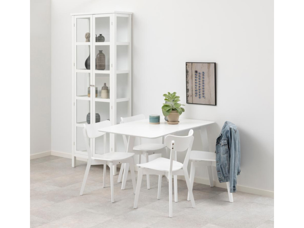 Roxby jedálenský stôl v kompaktnom hranatom formáte ponúka funkciu rozkladania z 80 na 120 cm. Biela lakovaná MDF doska s hladkým povrchom je doplnená základňou z bieleho kaučukovníka. Skrytý úložný priestor na predĺženie je ideálny pre hostí. Praktický a estetický doplnok do každého interiéru.