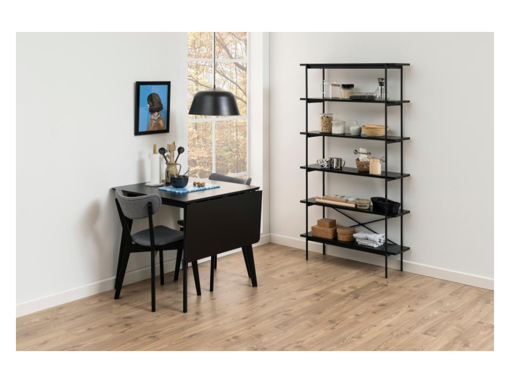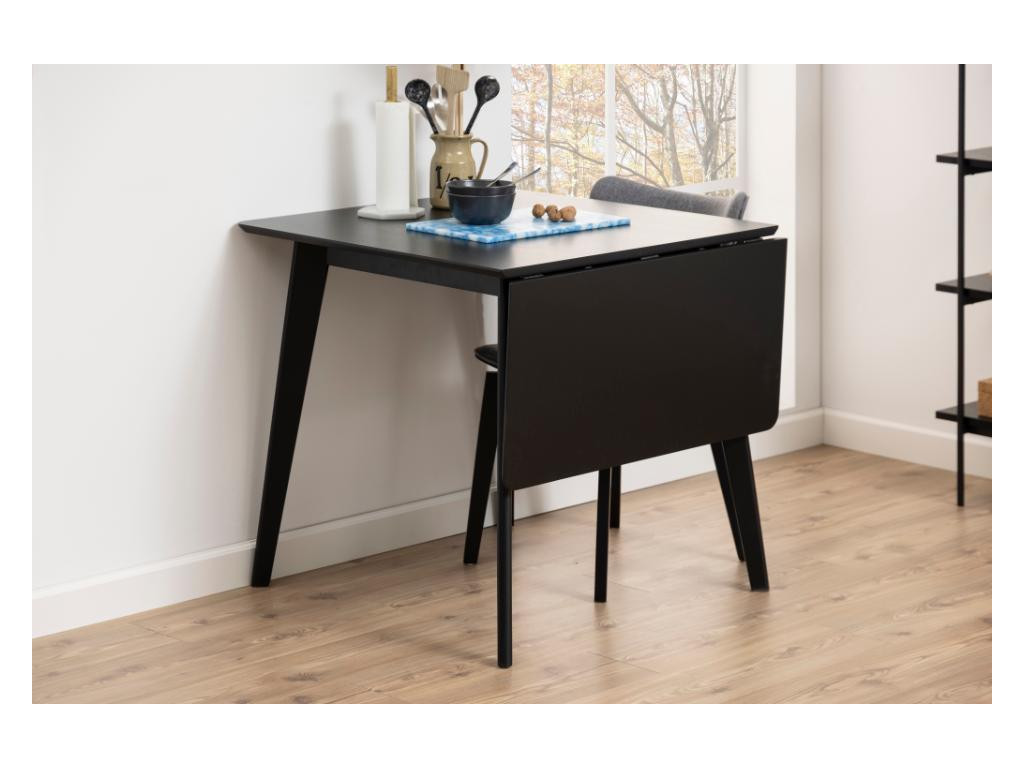 Stôl Roxby ponúka praktické rozkladanie a kompaktné rozmery. Vďaka úložnému priestoru na krídlo je ideálny do menších priestorov. Povrch z čiernej dubovej dyhy pôsobí elegantne a ľahko sa udržiava. Konštrukcia z kaučukovníka zabezpečuje stabilitu a dlhú životnosť.