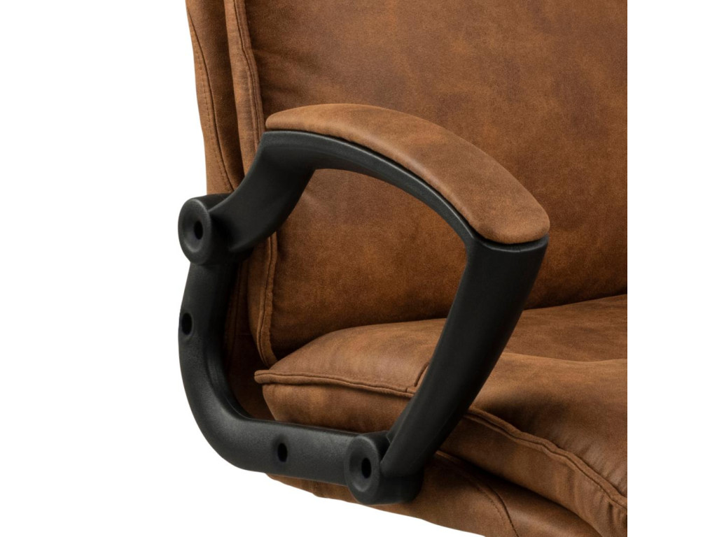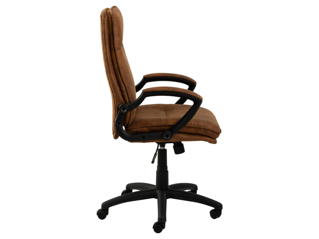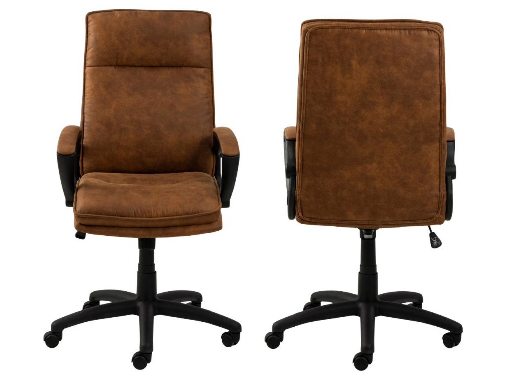 Stolička Brad v hnedom textilnom prevedení ponúka pohodlné sedenie s otočnou základňou, plynovým zdvihom a kolieskami. Čierny nylonový rám dopĺňa robustný vzhľad. Skvelá voľba pre domáce aj pracovné prostredie.