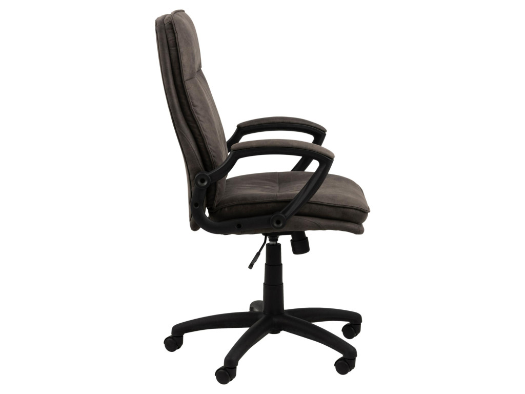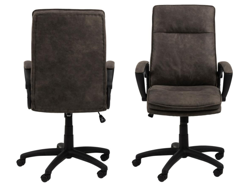 Stolička Brad s ergonomickým tvarovaním, antracitovým čalúnením a čiernou nylonovou základňou ponúka pohodlie na každý pracovný deň. Otočná, výškovo nastaviteľná a s funkciou nakláňania – ideálna do domácej aj profesionálnej kancelárie.