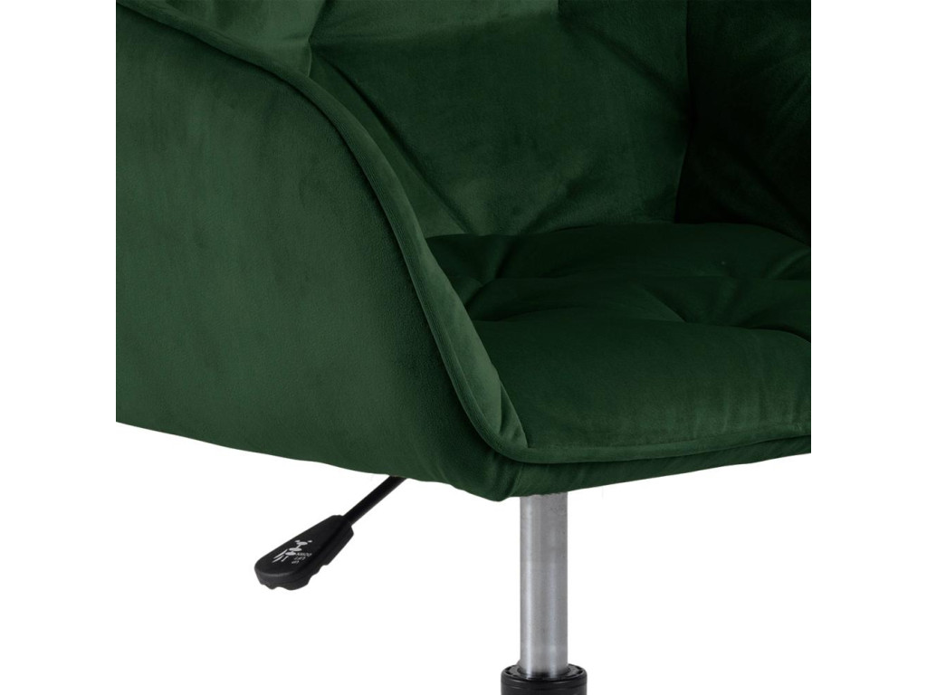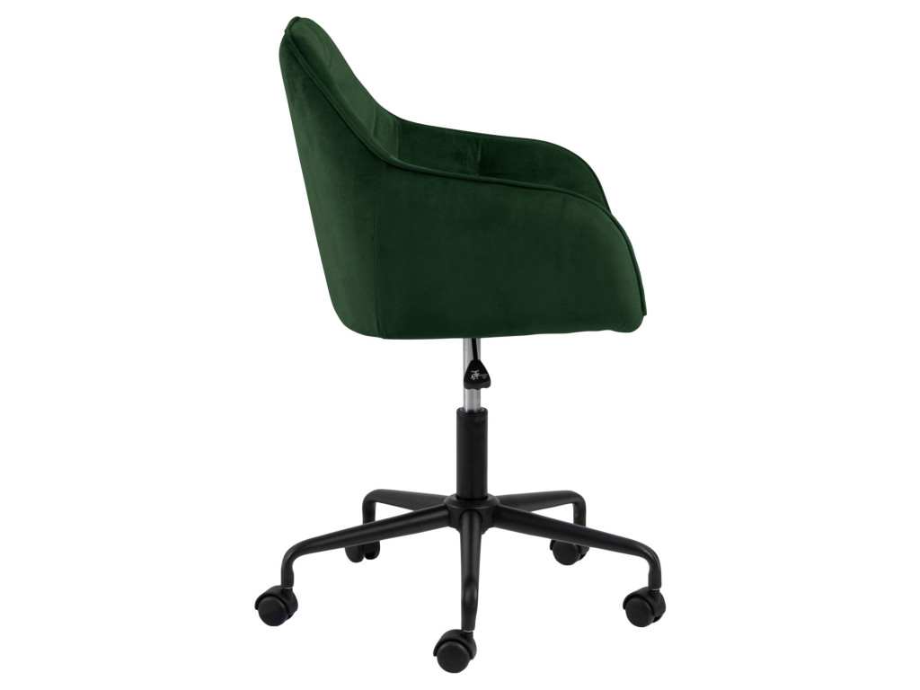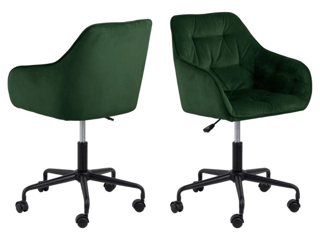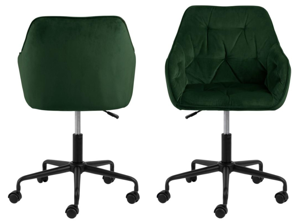 Stolička Brooke v lesnej zelenej farbe kombinuje eleganciu s funkčnosťou. Lakťové opierky a kvalitné čalúnenie zabezpečujú pohodlie počas dlhého sedenia. Otočná základňa s brzdovými kolieskami poskytuje flexibilitu a pohyb bez námahy. Pevná konštrukcia z čiernej ocele zaručuje stabilitu a dlhú životnosť.