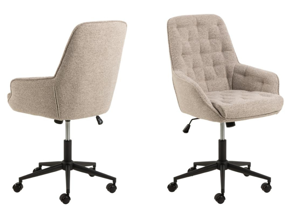 Model Erik ponúka kombináciu komfortu a funkčnosti. Béžové čalúnenie dopĺňa čierna päťramenná kovová základňa s kolieskami, plynovým zdvihom a otočnou funkciou. Ideálna voľba pre domáce pracovné prostredie.