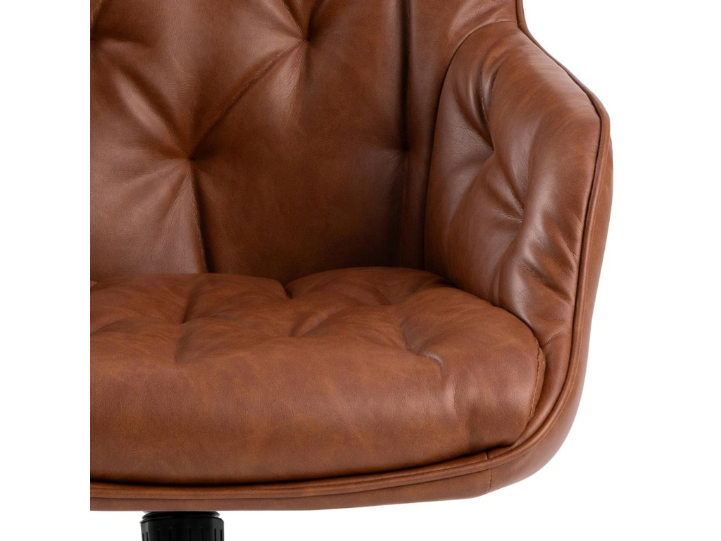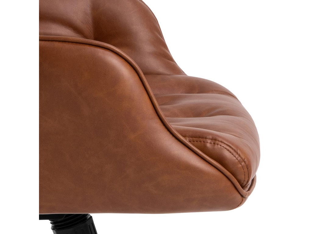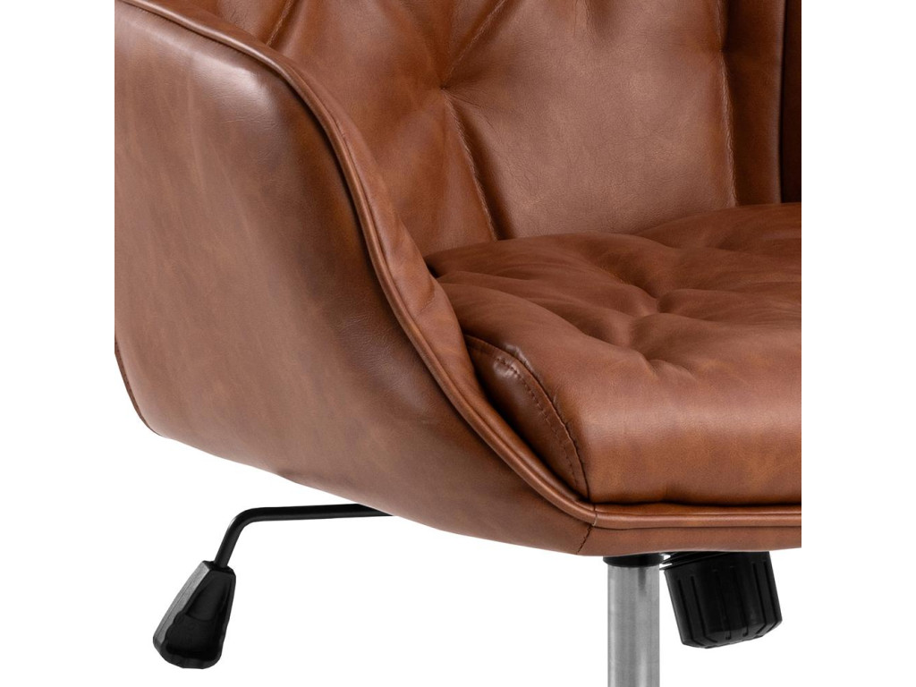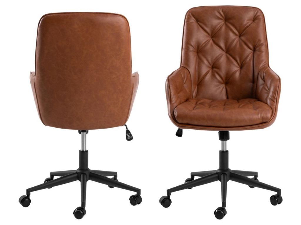 Retro verzia stoličky Erik v hnedej ekokoži je ideálna pre klasicky ladené kancelárie. Vďaka otáčavému mechanizmu, kolieskam a výškovému nastaveniu ponúka maximálne pohodlie pri práci, pričom čierna oceľová základňa dotvára robustný vzhľad.
