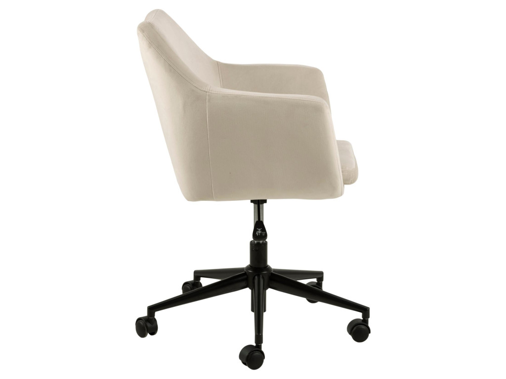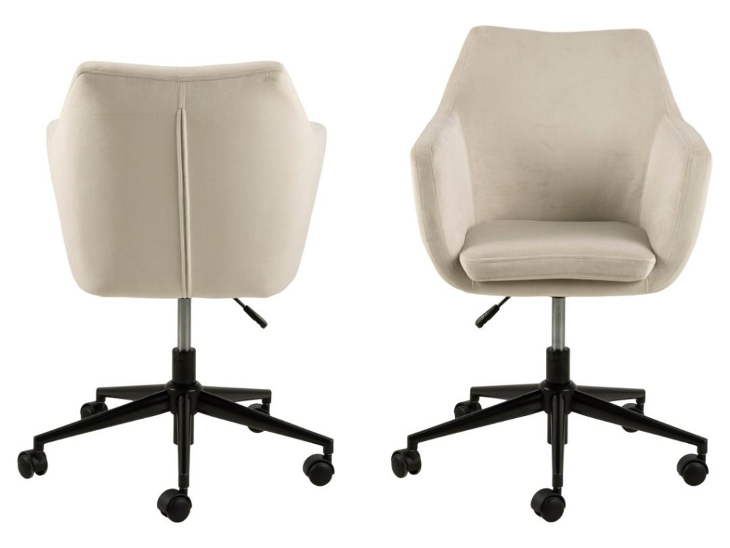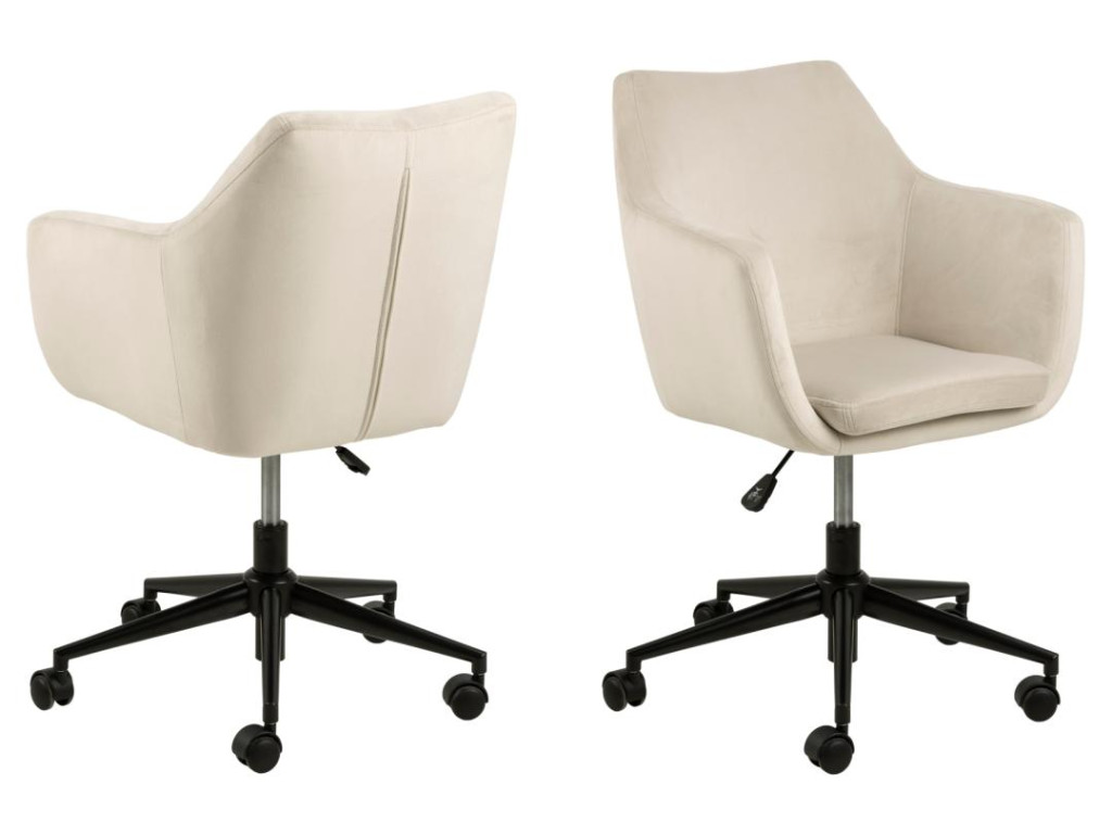 Stolička Nora v krémovo-čiernom prevedení je praktickým a elegantným riešením pre každú domácu kanceláriu. Vďaka čalúneniu a lakťovým opierkam poskytuje vysoký komfort pri práci. Otočná základňa s kolieskami zabezpečuje mobilitu. Nadčasový dizajn sa ľahko kombinuje s iným kancelárskym nábytkom.