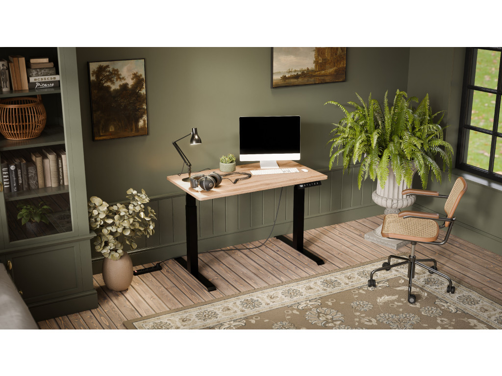 Teplý prírodný dekor dub wotan v kombinácii s čiernou konštrukciou pôsobí elegantne a útulne. Elektricky nastaviteľný stolík Moony ti umožní plynule meniť výšku pracovnej dosky a uložiť si až tri obľúbené nastavenia. Ideálny pre tých, ktorí chcú spojiť modernú technológiu s prírodným štýlom.