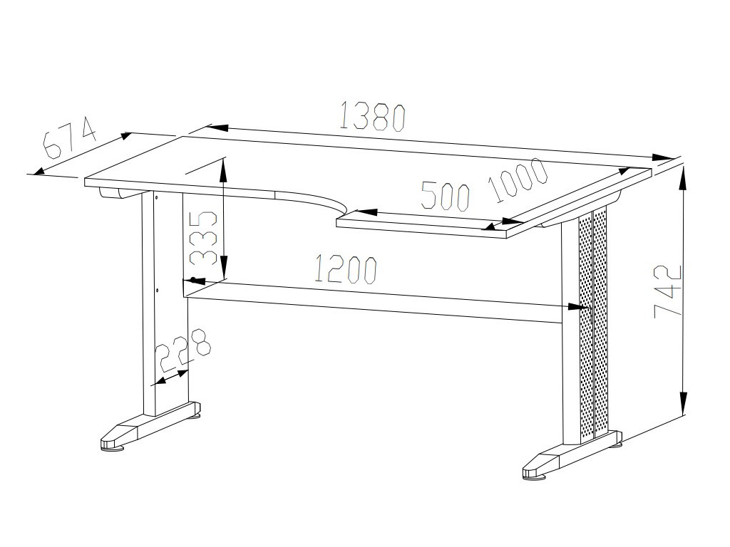 Písací stôl Optimal 13 s pravým rohom je navrhnutý tak, aby poskytoval pohodlie a efektívnosť pri práci. Výkroj v pracovnej doske umožňuje ergonomické sedenie a lepší prístup k pracovnej ploche. Doska z kvalitnej MDF s hrúbkou 22 mm zaručuje odolnosť a dlhú životnosť, zatiaľ čo kovové nohy a podnože zabezpečujú stabilitu a moderný priemyselný vzhľad. Tento stôl je ideálnou voľbou pre kancelárske priestory, kde je potrebné spojiť funkčnosť s estetickým dizajnom. Jeho robustná konštrukcia a moderné prvky vytvárajú ideálne pracovné prostredie.