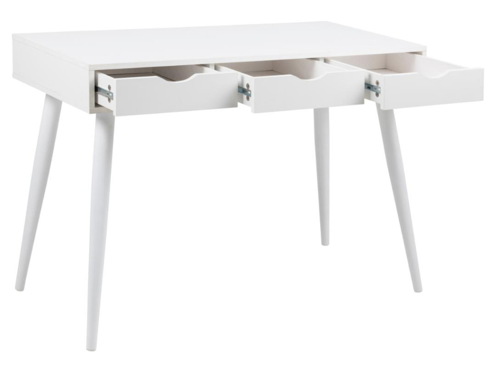 V bielom prevedení stôl pôsobí čisto, vzdušne a nadčasovo. Hodí sa najmä do menších priestorov, kde dokáže opticky zväčšiť miestnosť a pridať svetlo. Biely povrch ľahko zapadne do rôznych štýlov, od romantického až po moderný škandinávsky dizajn. Praktické zásuvky pomôžu udržať pracovný priestor uprataný a organizovaný.