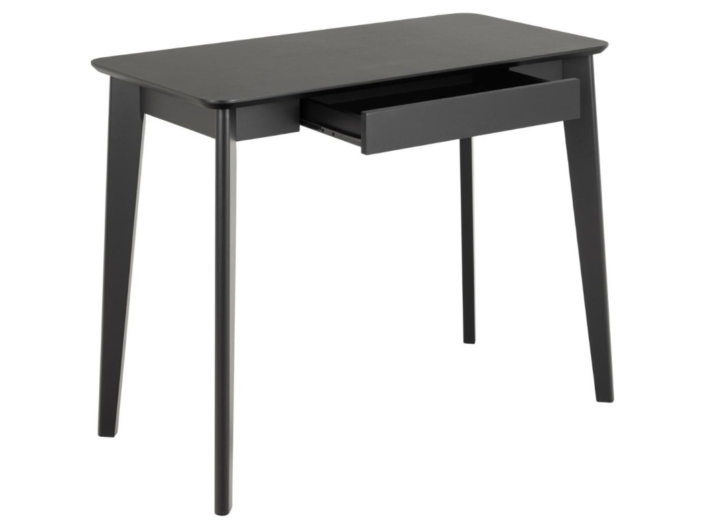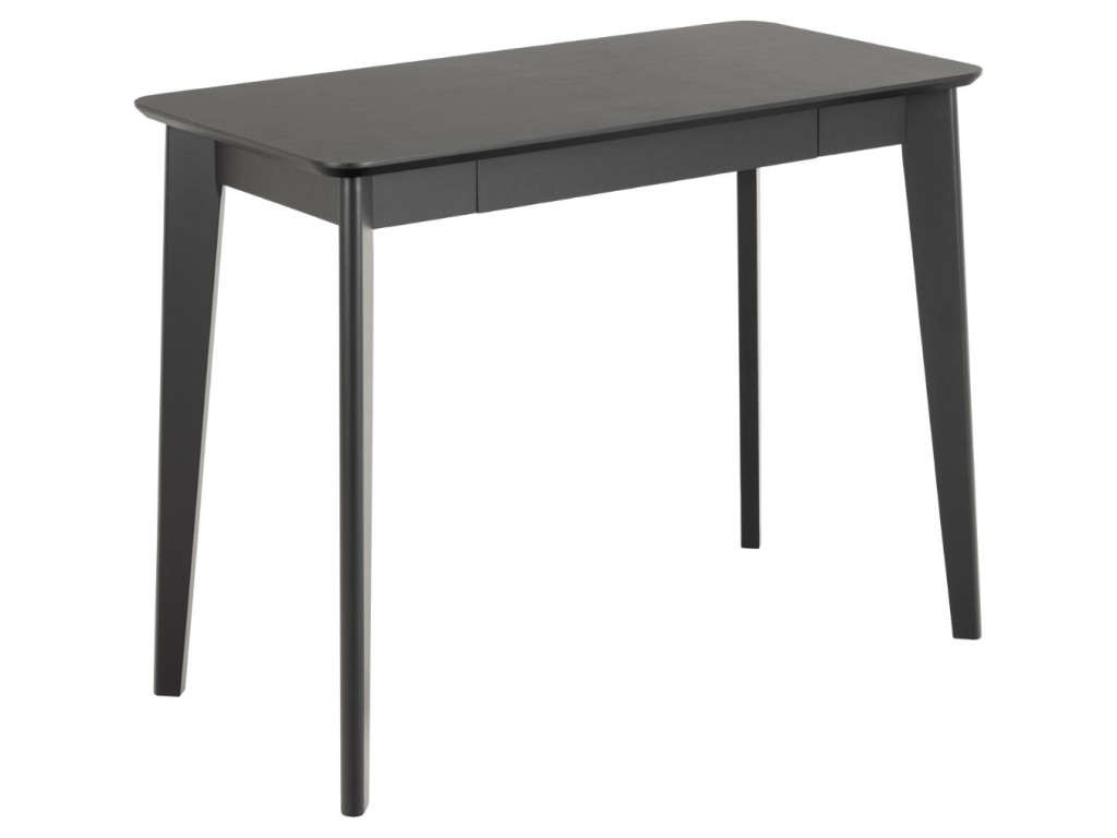 Kancelársky stôl Roxby ponúka praktickú funkčnosť v elegantnom čiernom prevedení. Jeho obdĺžnikový tvar a kompaktné rozmery z neho robia ideálny doplnok do domácej pracovne alebo študentskej izby. Matná čierna doska z lakovanej dubovej dyhy spolu s čiernou drevenou základňou z kaučukovníka dodávajú stolu sofistikovaný vzhľad, ktorý ľahko zapadne do moderného interiéru.