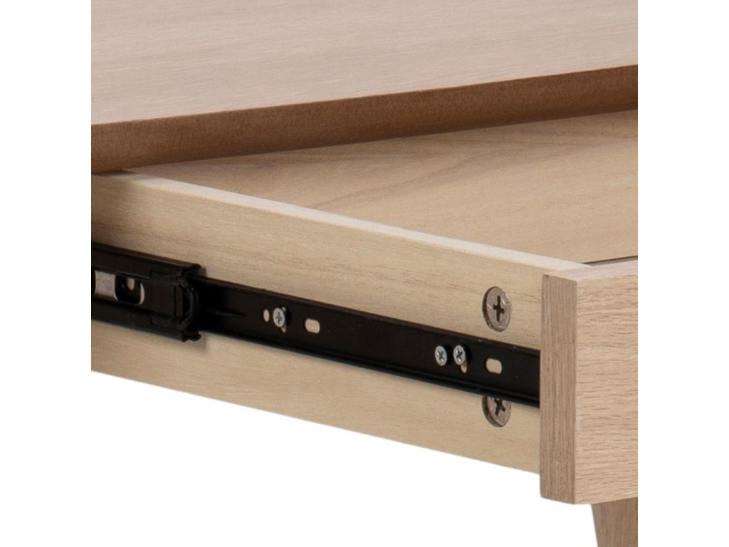 Zariaďte si domácu kanceláriu alebo študijný kút elegantne a prakticky s písacím stolíkom Woodstock. Jeho svetlá dubová dyha pôsobí jemne a prirodzene, ideálna na sústredenú prácu. Vstavaná zásuvka poskytne miesto na odkladanie písacích potrieb, zatiaľ čo pevná konštrukcia zabezpečí stabilitu. Vďaka štýlovému dizajnu krásne zapadne aj do obývačky alebo spálne.