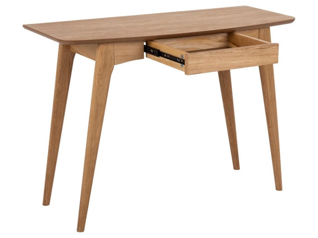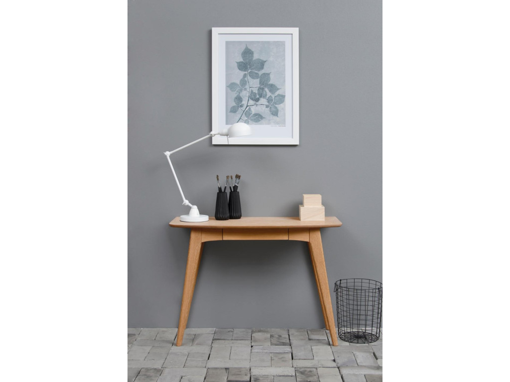Milovníci prírodných materiálov ocenia prírodný variant písacieho stolíka Woodstock. Dubová dyha s olejovaným povrchom zvýrazňuje kresbu dreva a vytvára hrejivú atmosféru. Ideálny na prácu z domu, ale aj ako dekoratívny prvok v miestnosti. Jednoduché línie a funkčné prevedenie robia z tohto stolíka nadčasový kúsok.