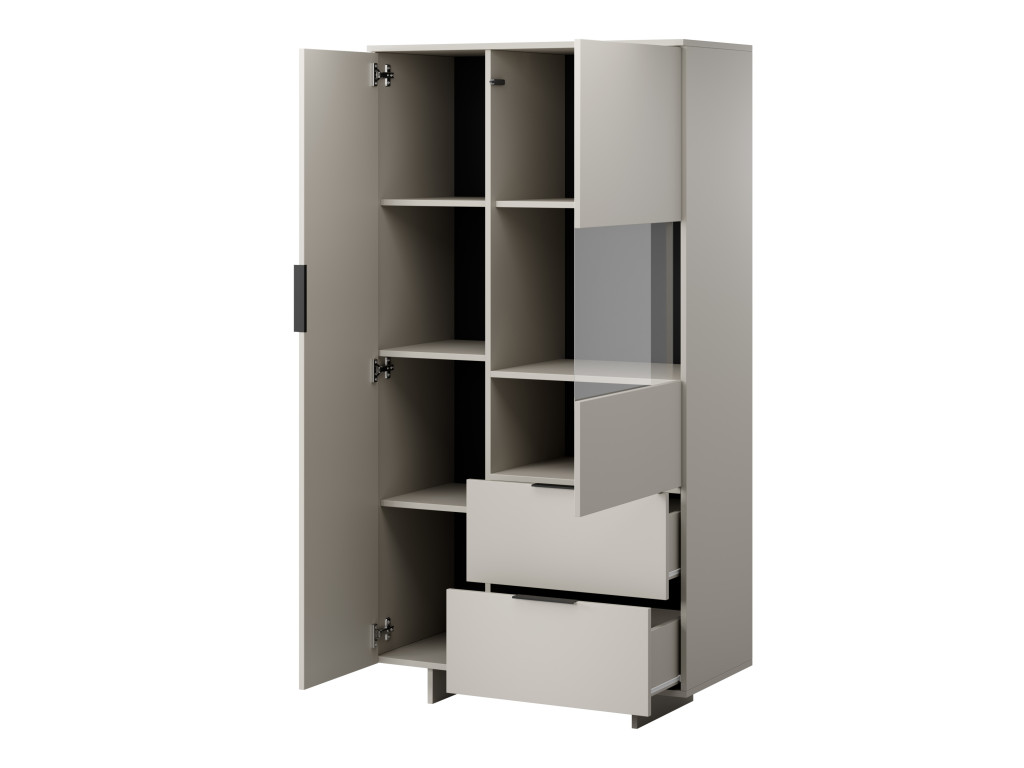 Priestranná vitrína Alma je ideálnym riešením pre tých, ktorí hľadajú kombináciu praktickosti a štýlového dizajnu. Disponuje dvoma dvierkami a dvoma zásuvkami, ktoré poskytujú dostatok miesta na uloženie riadu, dekorácií či iných predmetov. Vnútorný priestor za dvierkami je priestranný, ideálny na udržiavanie poriadku v obývačke, jedálni alebo pracovni. Vitrína vyniká svojimi čistými líniami a moderným dizajnom, čím krásne doplní každý interiér. Je to elegantný a funkčný kus nábytku, ktorý okrem úložného priestoru prinesie do vášho domova aj vkusnú atmosféru.