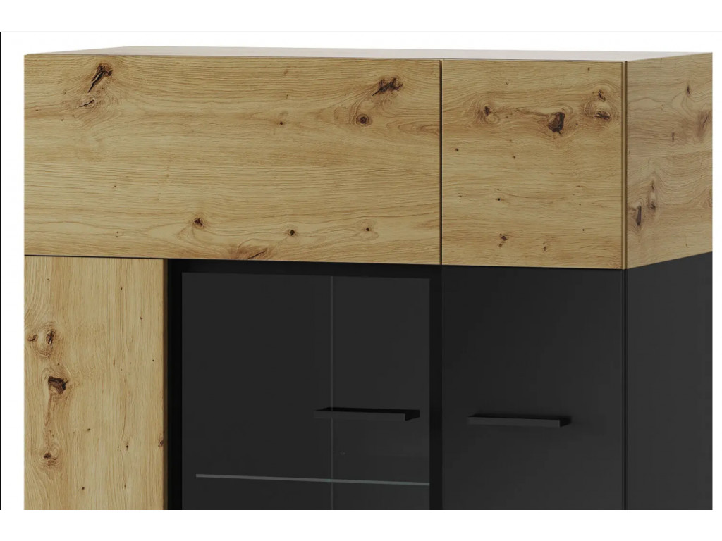 Pokiaľ hľadáte praktickú vitrínu do obývačky Lucas 15 splní všetky požiadavky. Disponuje veľkým úložným priestorom, do ktorého môžete uložiť kuchynský riad, dekoračné prvky, ozdobné predmety a ďalšie. Vitrína disponuje 8 policami, no zaujme vás najmä originálnym dizajnom, ktorý v obývačke vynikne.