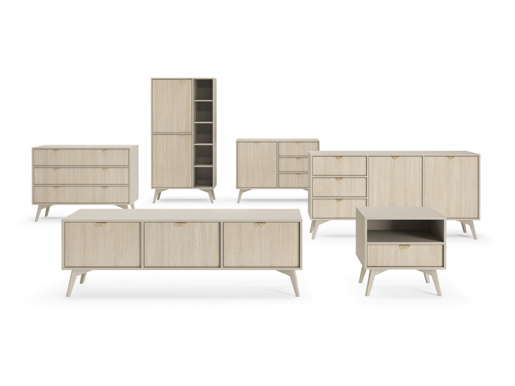 Inšpirujte sa jednoduchým štýlom, ktorý interiéru dodáva útulnosť. Béžový regál Forest ponúka veľkorysý úložný priestor, ktorý tvoria dve jednodverové skrinky s vloženou poličkou a 5 poličiek na rôzne dekorácie. Čelá dvierok sú so vzorom rybej kosti.