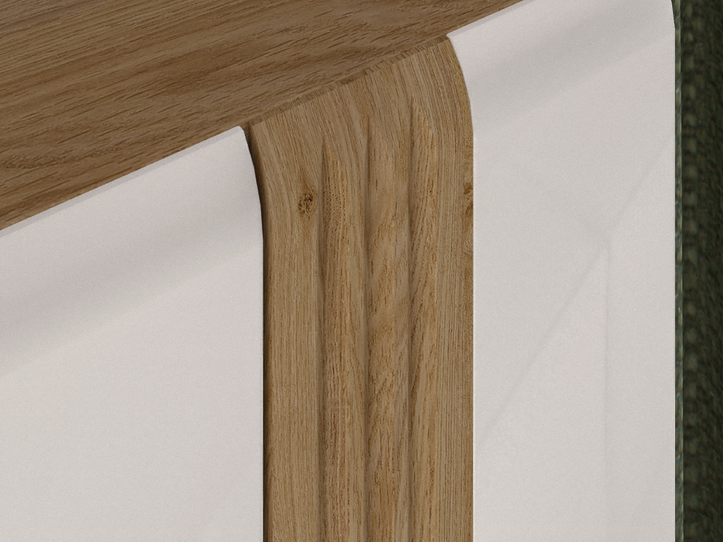 Jedinečnosť kolekcie Adagio spočíva aj v presklených vitrínach s certifikovaným tvrdeným sklom, ktoré môžete osvetliť pre atmosférický efekt. Vrúbkované vsadky v rovnakom odtieni ako korpus dodávajú hrejivú textúru, zatiaľ čo elegantne zahnuté čelné plochy pridávajú jemný nádych moderného klasického dizajnu, ktorý prelomí strohú priamu líniu.