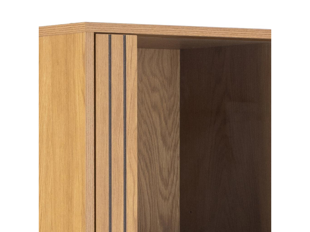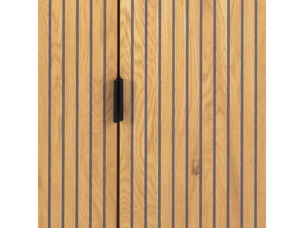 - Moderná vitrína s lamelovým čelom v dekore matného divokého duba