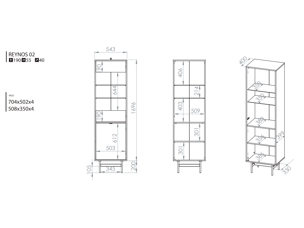 Rozmery (ŠxHxV): 54 x 40 x 190 cm