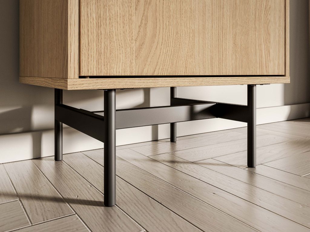 Kolekcia Reynos predstavuje moderný nábytok, ktorý spája minimalistický dizajn s vysokou funkčnosťou. Kombinácia svetlého dekoru duba mavelie a čiernych kovových prvkov vytvára nadčasový vzhľad s jemným industriálnym akcentom, ktorý ľahko zapadne do obývačky aj spálne. Vizuálna ľahkosť, čisté línie a premyslené detaily robia z tejto kolekcie atraktívne riešenie pre súčasné bývanie.