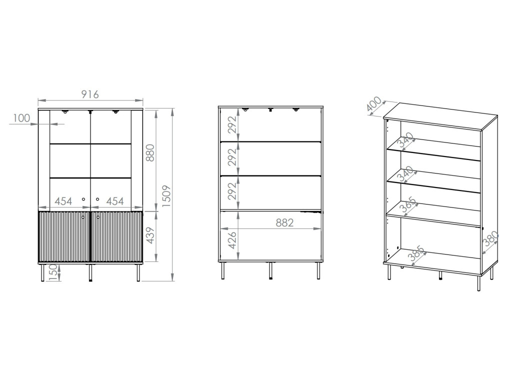 Vitrína Sophie 03 je elegantný kus nábytku s LED osvetlením, ktorý vám umožní vystaviť obľúbené dekorácie. Dve sklenené police vytvárajú tri priestranné výklenky, ideálne na porcelán či suveníry. Priestranná polica za MDF čelom ponúka ďalší úložný priestor.