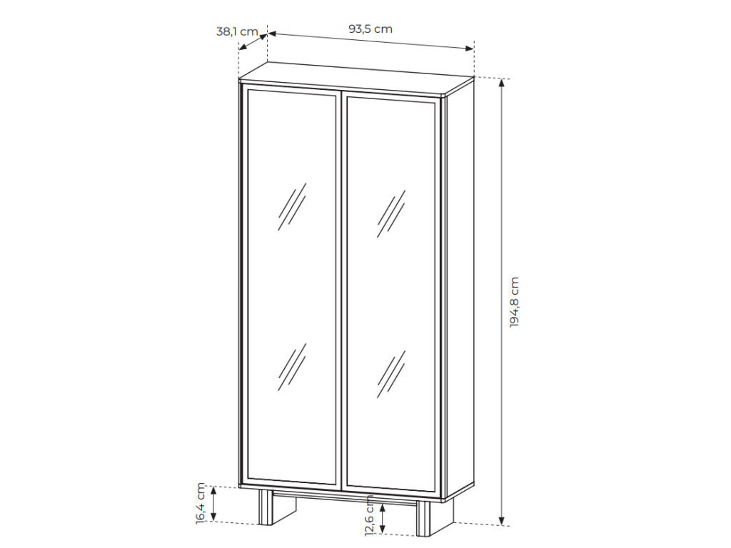 Rozmery: 93,5 x 38,1 x 194,8 cm