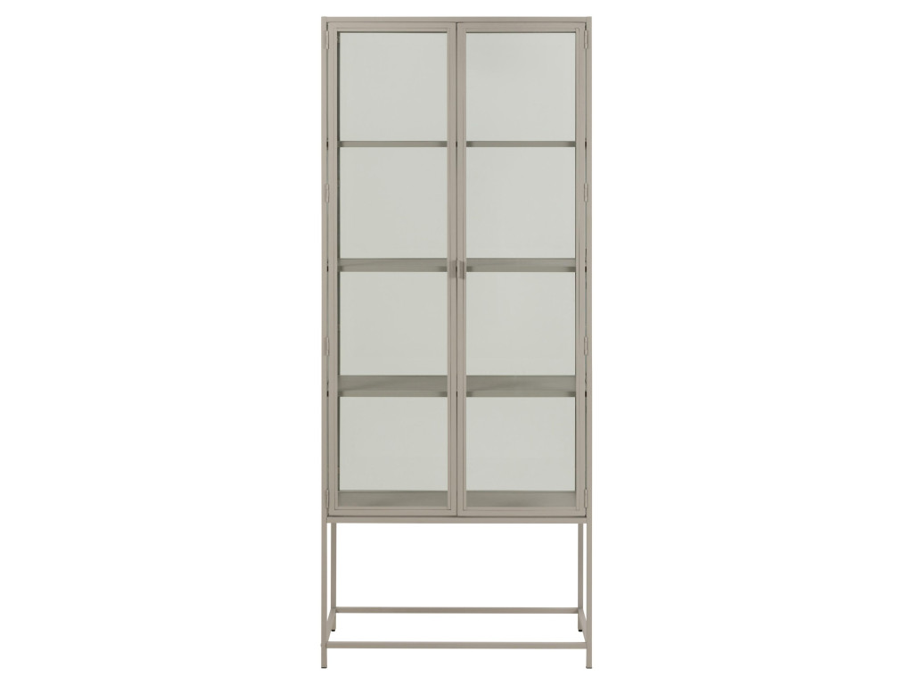 Vitrína Seaford spája sivý industriálny dizajn s eleganciou číreho tvrdeného skla. Pevný oceľový rám s práškovým nástrekom dopĺňajú 2 sklenené dvierka, ktoré chránia vystavené predmety pred prachom, a 4 sivé melamínové police s ľahko udržiavateľným povrchom. Ideálna na riad, dekorácie či ozdobné kúsky – moderný a praktický doplnok každej domácnosti.
