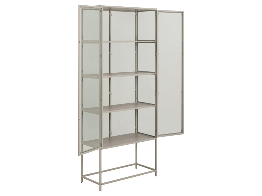 Štíhla vitrína Seaford vystúpi do výšky takmer dvoch metrov a zabalí vaše obľúbené predmety do elegantného industriálneho rámu. Matne sivá oceľ s hrubým práškovým nástrekom dodáva nábytku pevný charakter, zatiaľ čo dvojité dvierka z číreho, tvrdeného skla vpúšťajú dnu svetlo a chránia dekorácie pred prachom. Štyri police v sivej vytvoria pozadie pre sklo, porcelán či kolekciu kníh; horná doska v rovnakom odtieni harmonicky uzatvára celok.