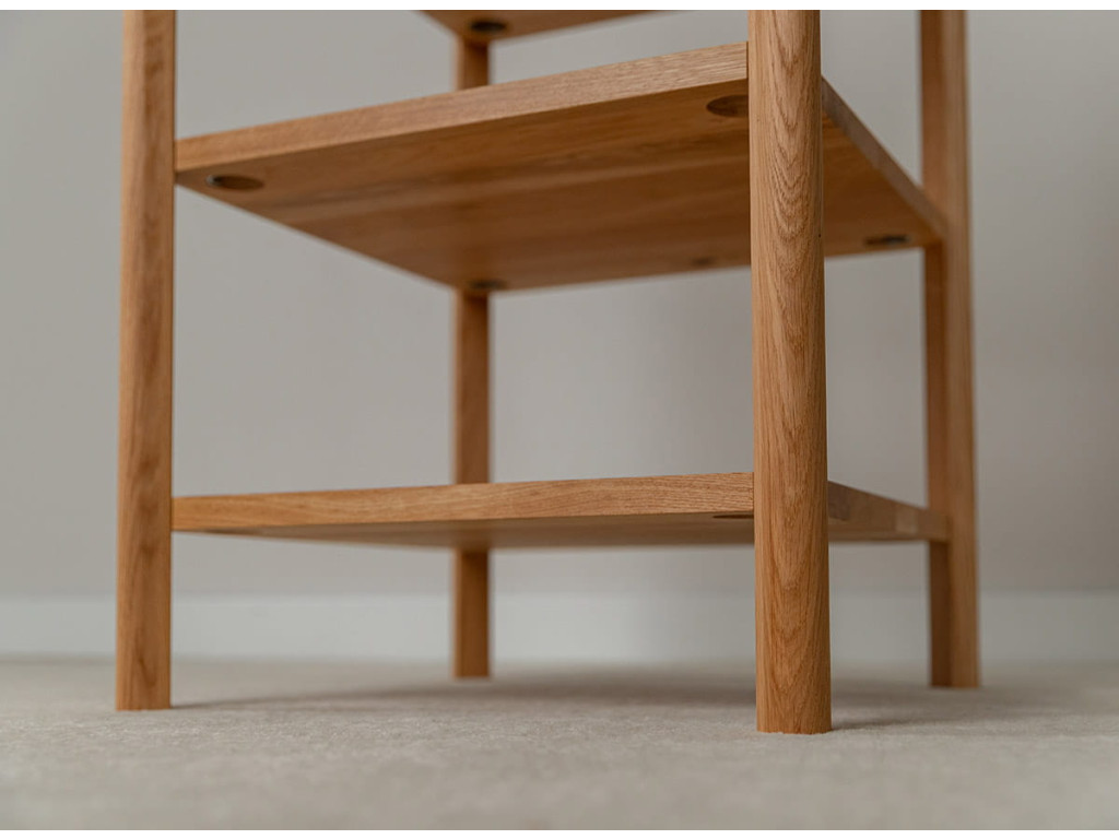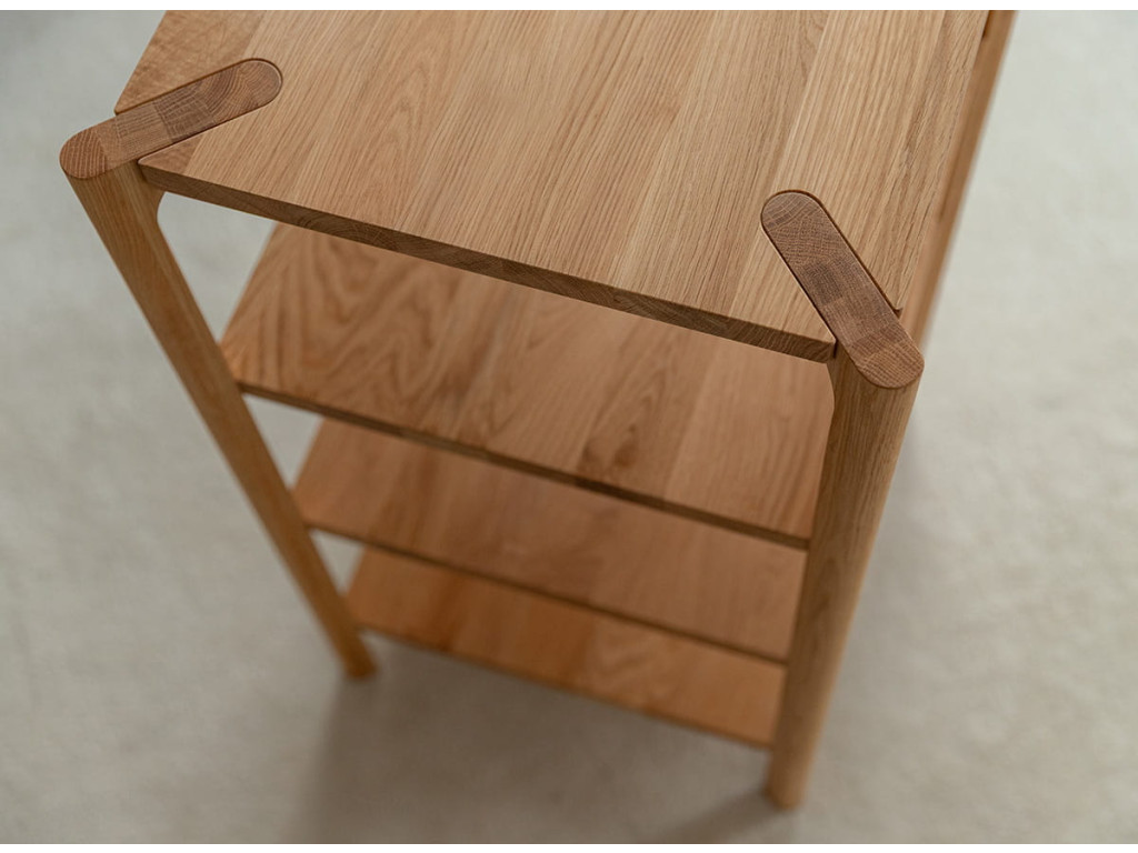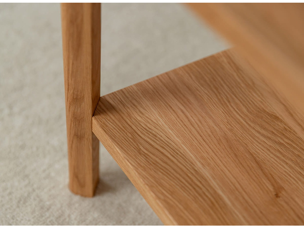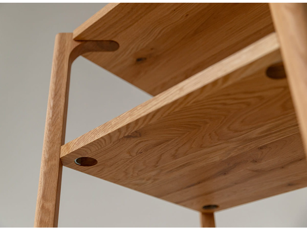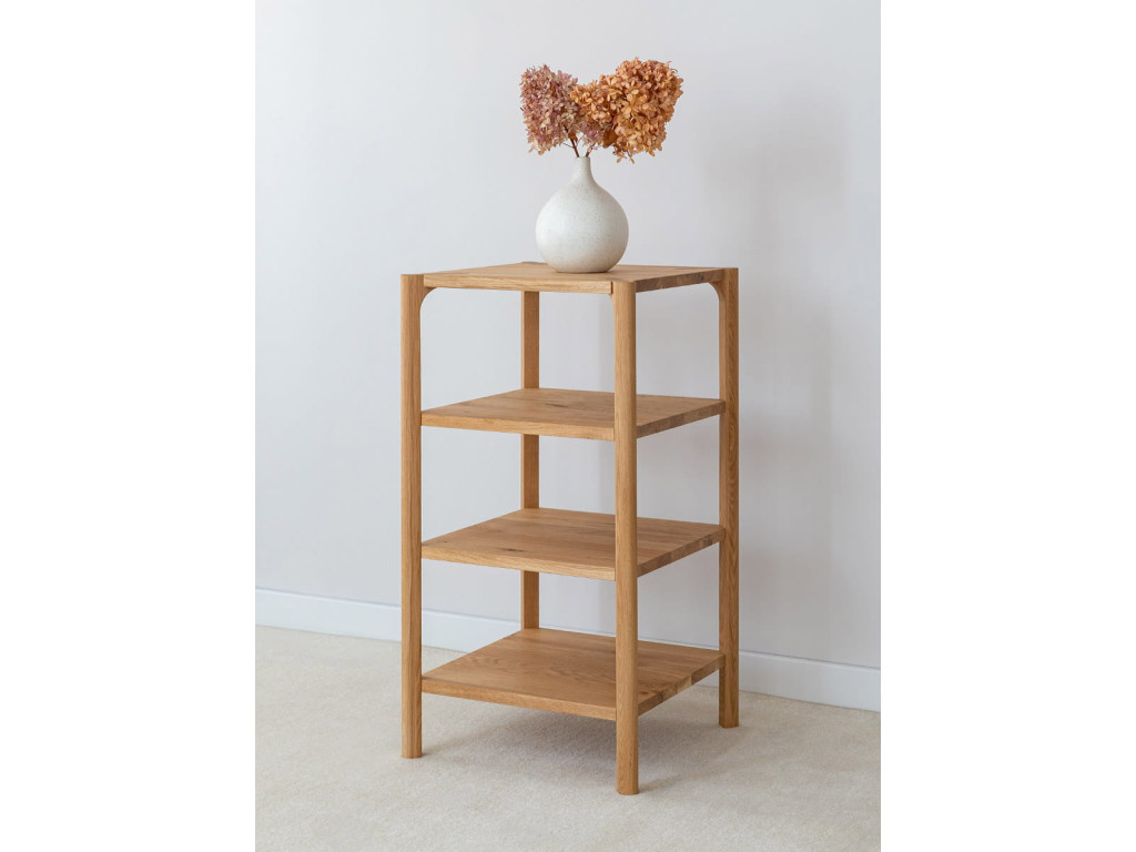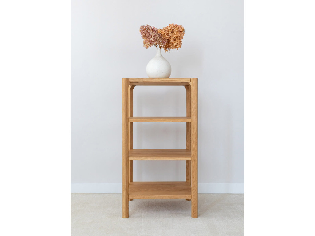 Regál Campi z masívneho dubu je praktickým riešením pre každodenné usporiadanie vecí. Jeho jednoduchá forma pôsobí prirodzene a zapadne do rôznych interiérov. Otvorené police poskytujú ľahký prístup a prehľadnosť. Ideálny doplnok pre priestor, kde dominuje pokoj, funkčnosť a čistý dizajn.
