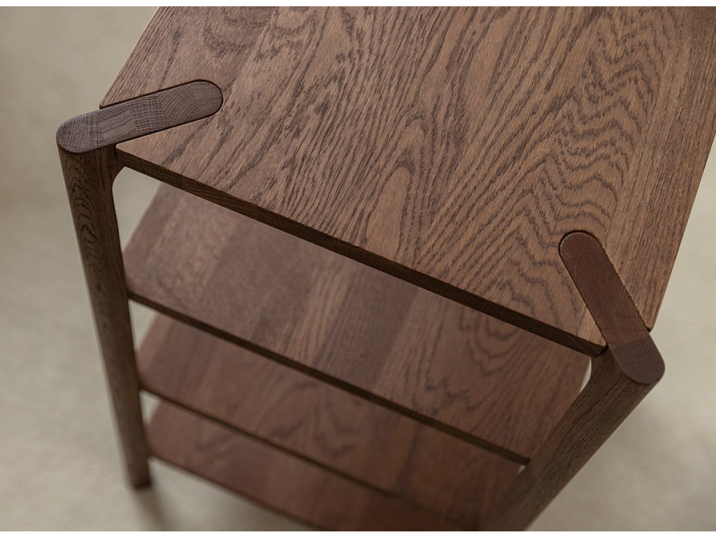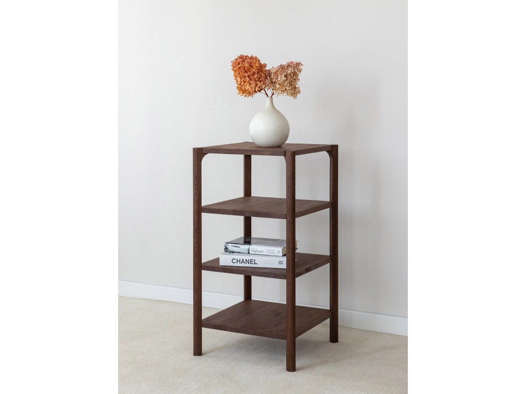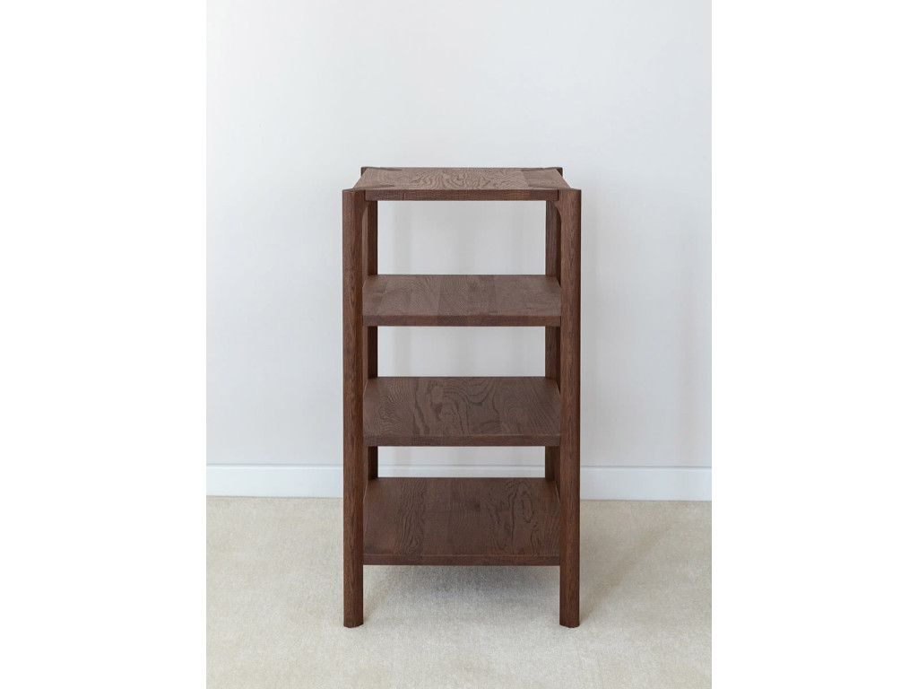 Regál Campi v prevedení tabakovo hnedá zaujme svojím hlbším tónom dreva a nadčasovým charakterom. Konštrukcia z masívneho dubu v kombinácii s olejovanou povrchovou úpravou zabezpečuje dlhú životnosť a odolnosť. Tri otvorené police umožňujú prehľadné uloženie aj vystavenie predmetov bez zbytočného zahltenia priestoru. Tento univerzálny kus nábytku sa ľahko prispôsobí rôznym štýlom bývania. Rozmery: 43 × 80 × 43 cm (š × v × h).