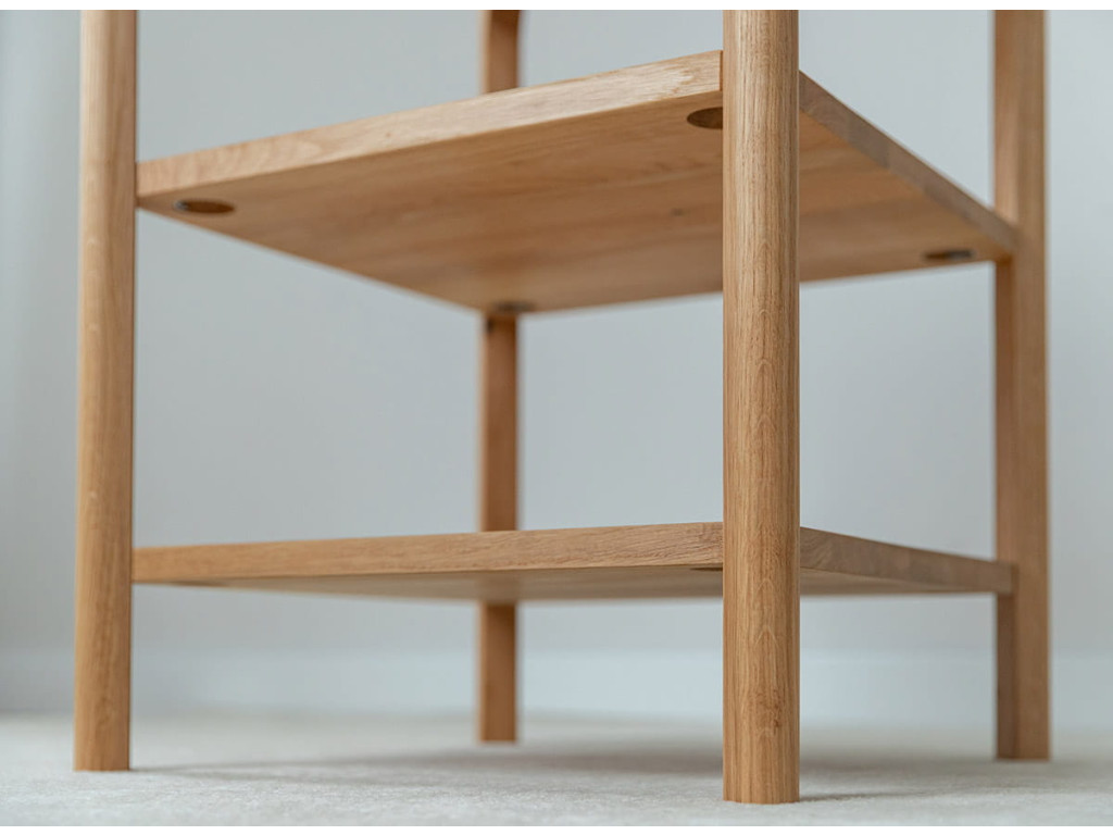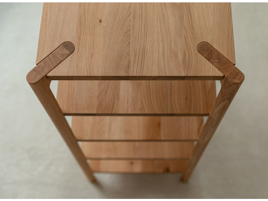 Regál Campi z masívneho dubu je ideálny pre menšie priestory, kde je dôležité efektívne využitie miesta. Jeho štíhly dizajn pôsobí ľahko a nezaťažuje interiér. Otvorené police ponúkajú dostatok priestoru na usporiadanie vecí podľa potreby. Skvelé riešenie pre interiér, kde sa spája praktickosť a jednoduchý štýl.