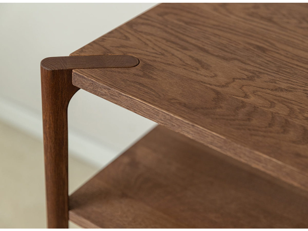 Celá séria je vyrobená z kvalitného dubového masívu, ktorý vyniká dlhou životnosťou. Konečná úprava olejovaním v polomatnom prevedení zvýrazňuje prirodzenú kresbu dreva, chráni povrch a zachováva jeho autentický charakter. Kolekcia je dostupná v dvoch farebných variantoch – prírodný dub a tabakovo hnedá.