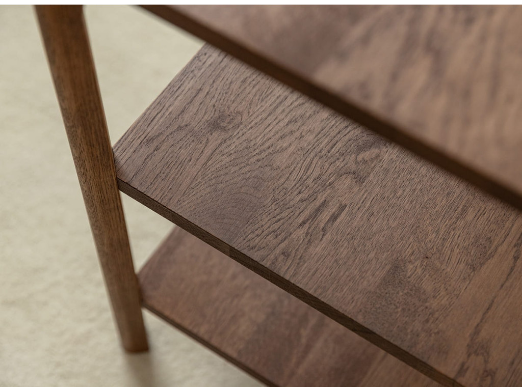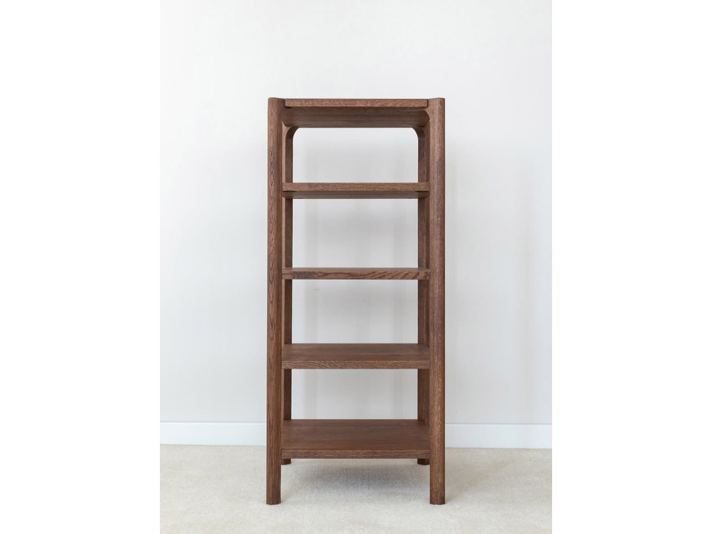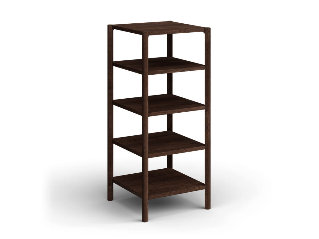 Regál Campi v prevedení tabakovo hnedá pôsobí elegantne a zároveň prakticky, najmä v priestoroch, kde je potrebné šetriť miesto. Vyrobený z masívneho dubu s olejovanou povrchovou úpravou ponúka vysokú odolnosť a stabilitu. Štyri otvorené police umožňujú prehľadné usporiadanie rôznych predmetov bez vizuálneho zahltenia priestoru. Jeho štíhla forma z neho robí ideálny doplnok do moderných aj prírodne ladených interiérov. Rozmery: 43 × 100 × 43 cm (š × v × h).