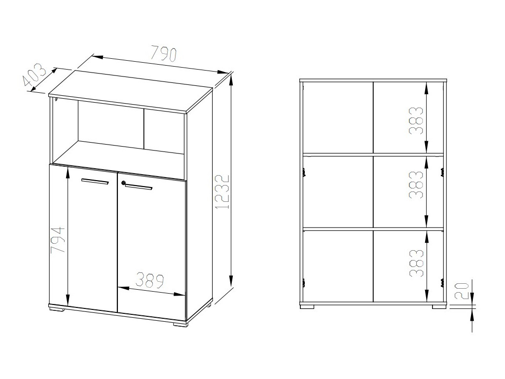 Dvojdverová komoda Optimal 10 – kombinácia otvoreného a uzavretého úložného priestoru