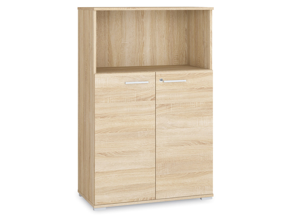 Dvojdverová komoda Optimal 10 ponúka kombináciu otvorenej police a uzavretého úložného priestoru za dvierkami. Praktická a elegantná, ideálna na organizáciu kancelárskych potrieb a dokumentov. Jej moderný dizajn sa hodí do každého pracovného prostredia.