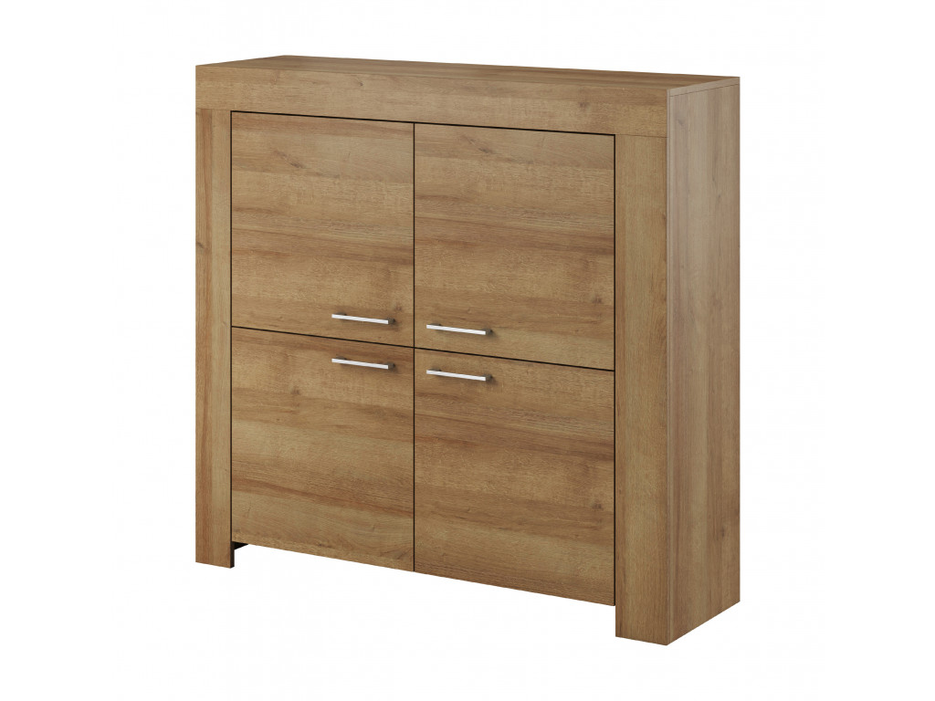 Komoda Sky vás prekvapí nie len klasickým dizajnom ale aj funkčným priestorom vo vnútri. Disponuje veľkým úložným priestorom vďaka policiam za dvierkami. Komoda je vyrobená vo farbe dub riviera takže zapadne do každého interiéru. Dvierka zdobia úchytky v hliníkovej farbe.