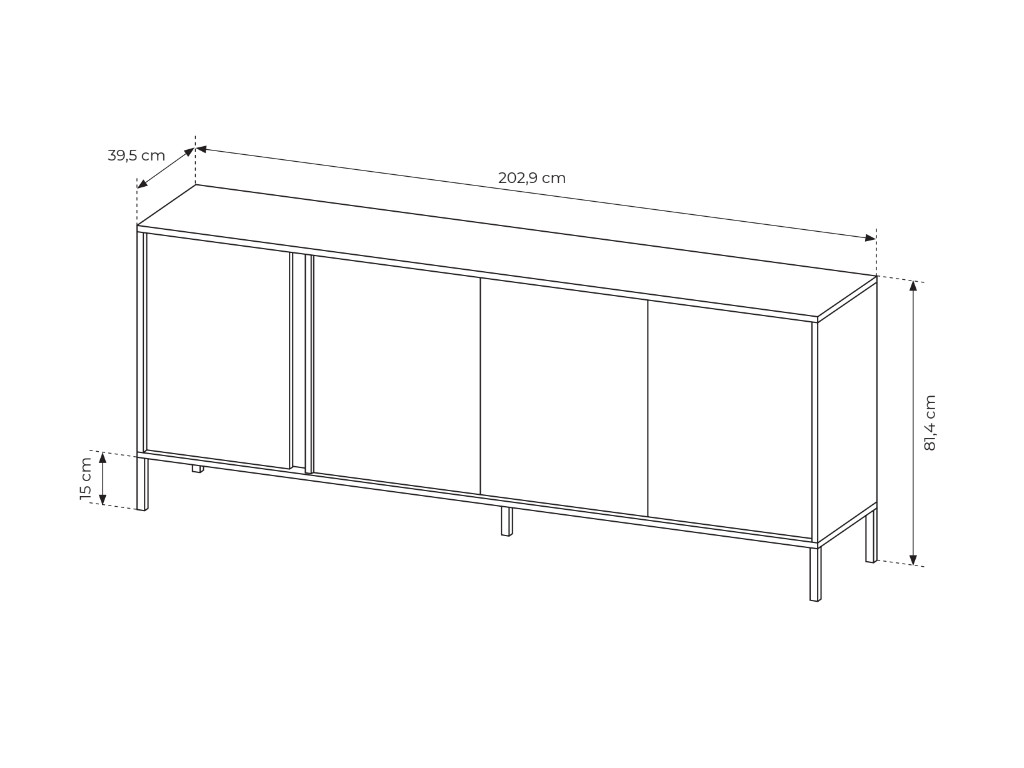 Komoda Dast v nadčasovom dizajne dodá interiéru nenapodobiteľnú exkluzívnu atmosféru. Za 4 dvierkami s nenápadným mechanizmom push to open sa ukrývajú 3 priestranné skrinky. V každej skrinke sú umiestnené široké police na uloženie všetkých nevyhnutností. Nezabudnite využiť i priestor hornej dosky. Je ako stvorený na vystavenie drobných dekorácií, fotografií či spomienkových predmetov. 4-dverová komoda je ideálna do obývacej izby, ale svoje miesto si nájde aj v spálni či jedálni.