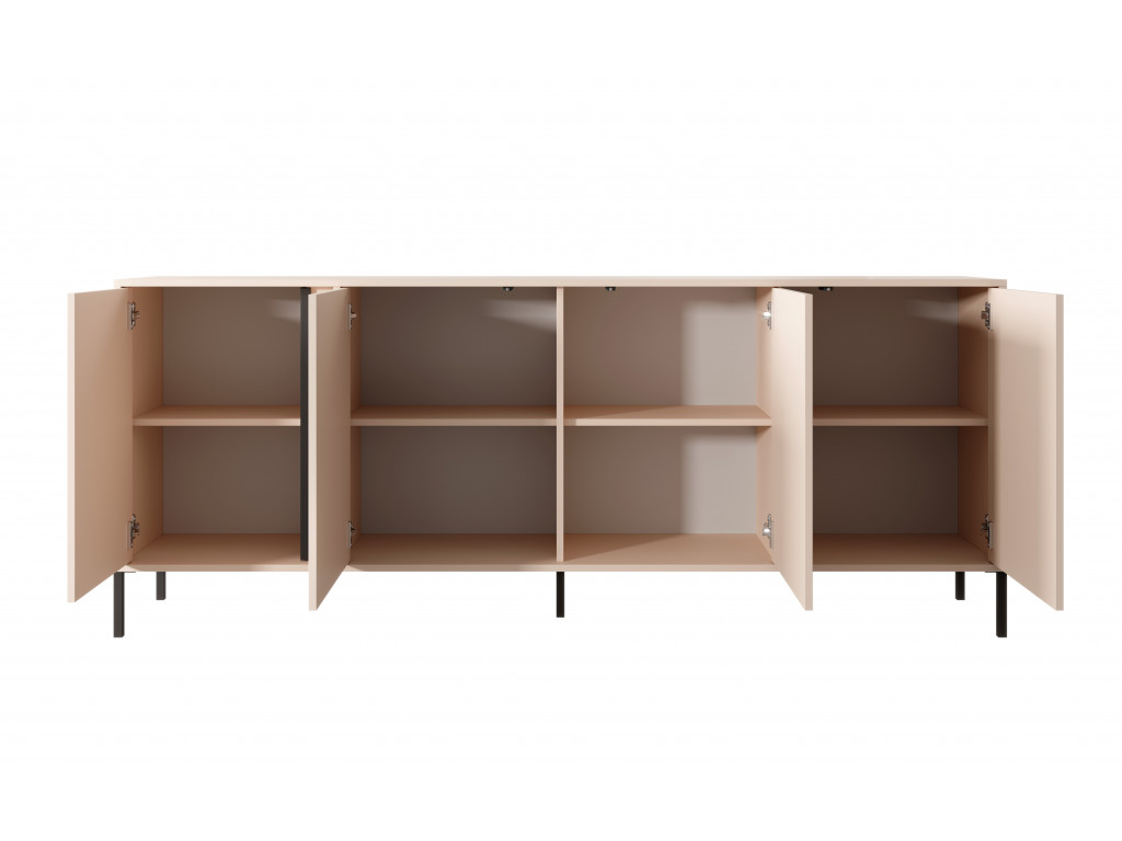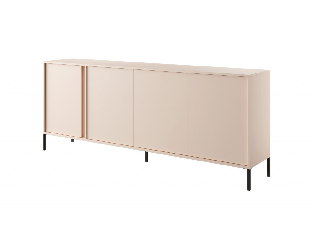 Zariaďte si obývačku alebo spálňu s nápaditou béžovou komodou Dast. Štvordverová komoda Dast pevne stojí na čiernych kovových nožičkách. Charakterizuje ju predovšetkým moderný minimalistický dizajn a štýlová, ľahko kombinovateľná farba. Komodu si obľúbite aj pre dostatočne veľký úložný priestor.