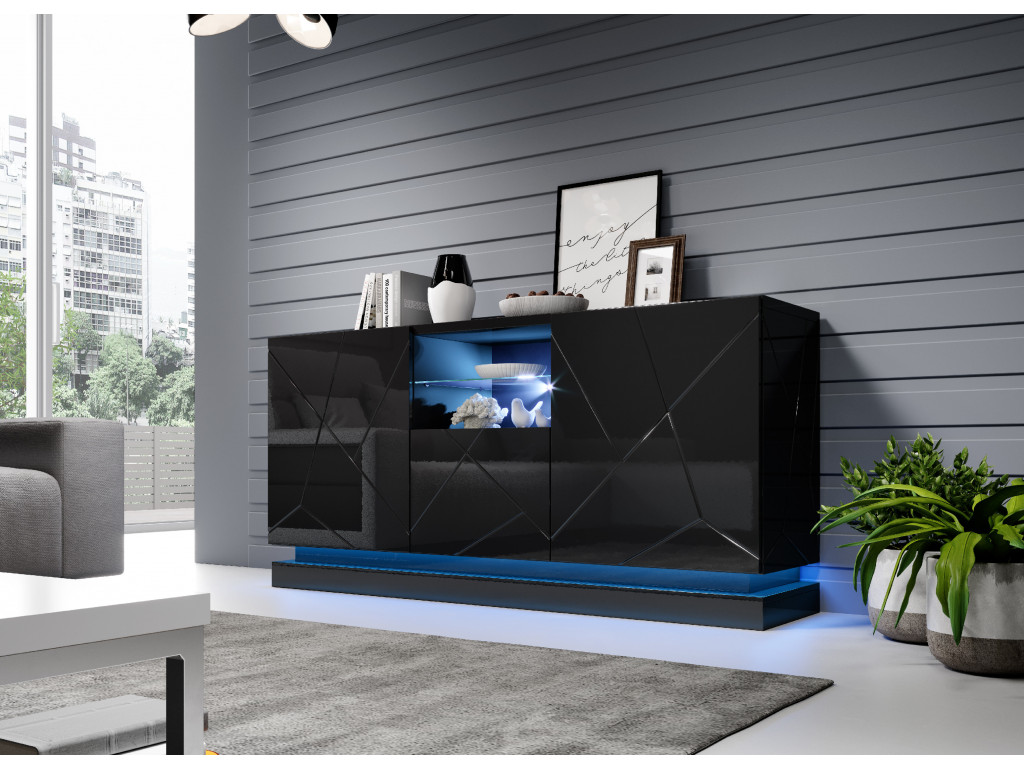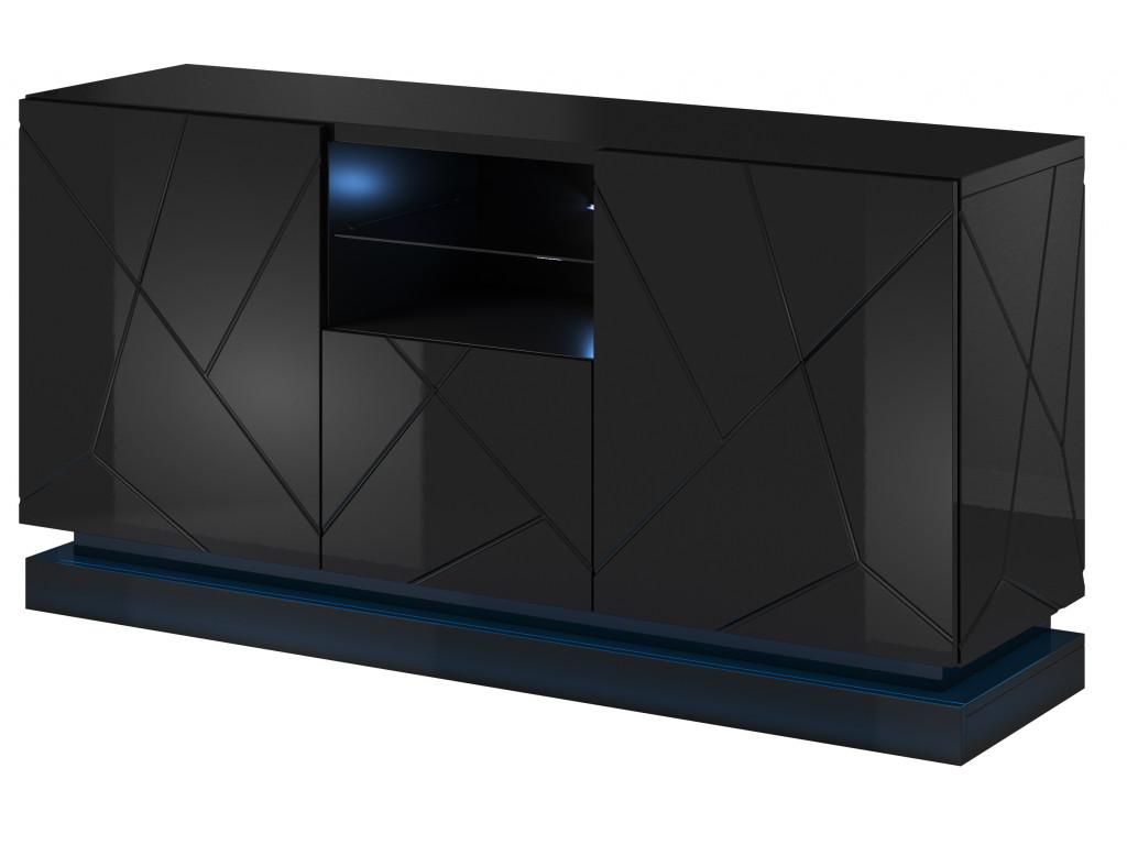 Ak hľadáte zaujímavú čiernu komodu so štýlovým dizajnom, potom bude komoda Qiu 2D1K pre vás tá pravá. Netradičné frézovanie na predných a bočných plochách je ako stvorené do moderného interiéru. Vďaka 3 skrinkám a sklenej polici ponúka dostatok úložného priestoru na všetko, čo potrebujete. Dokonca sa k nej dá dokúpiť aj moderné LED osvetlenie.