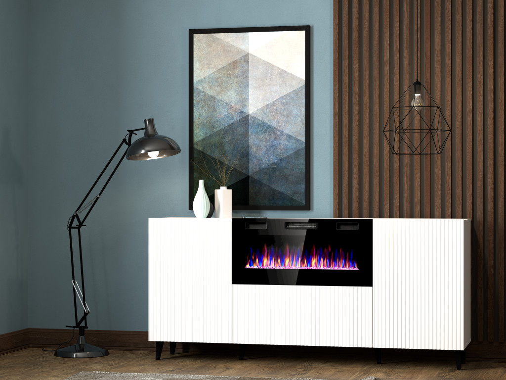 Dizajnová komoda Pafos 180 s krbom - biela