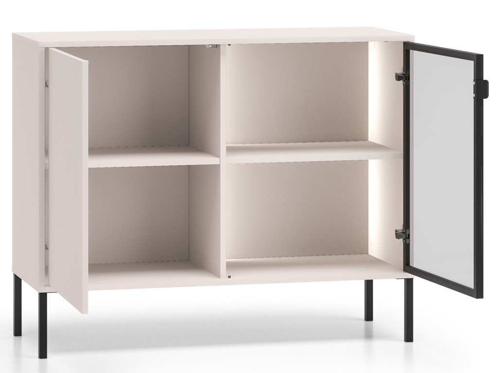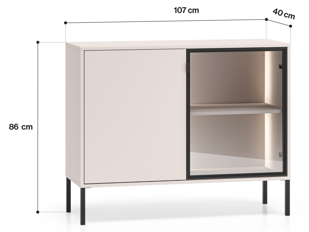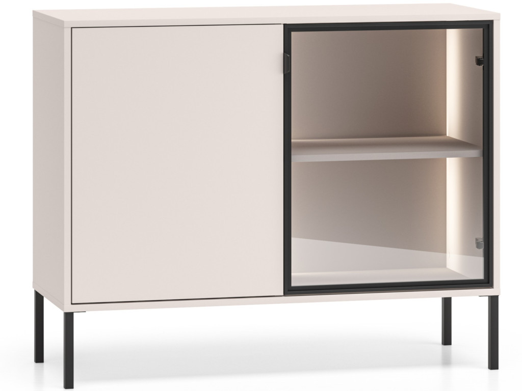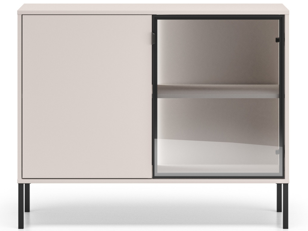 Komoda Barnee 03 v kašmírovom prevedení je ideálnou voľbou pre svetlé a harmonické interiéry. Sklenené dvierka prinášajú vizuálnu ľahkosť a umožňujú decentné vystavenie doplnkov. Kompaktné rozmery robia z komody praktický úložný prvok. Farebná kombinácia béžovej a čiernej prirodzene zapadá do moderného štýlu kolekcie Barnee.