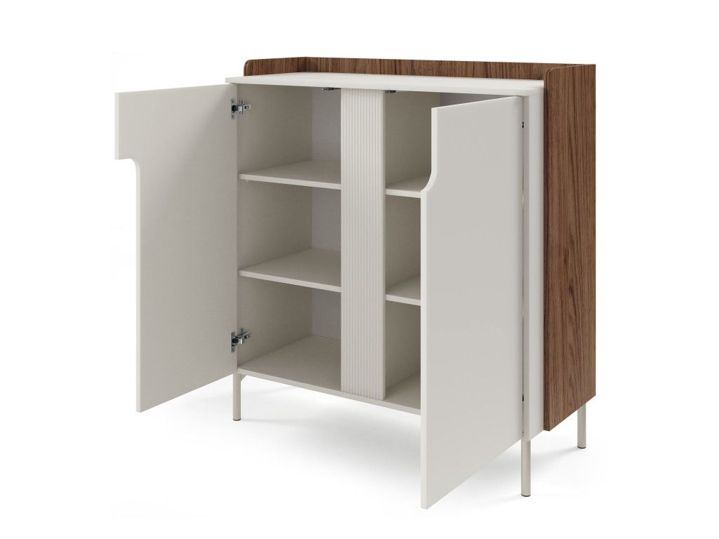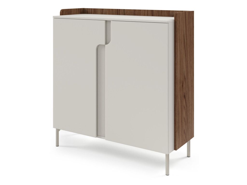 Dvojdverová komoda Positano PO8 v prevedení orech alba / kašmírová béžová zaujme výrazným kontrastom a moderným dizajnom. Spojenie teplého orechového dekoru a svetlej béžovej vytvára elegantný a vizuálne atraktívny celok. Dvierka s tvarovaním a vrúbkovanou lištou dodávajú komode jedinečný charakter. Kompaktné prevedenie je ideálne aj do menších priestorov. Bezúchytkové otváranie push to open (Tip-On) podčiarkuje čistý a súčasný vzhľad.