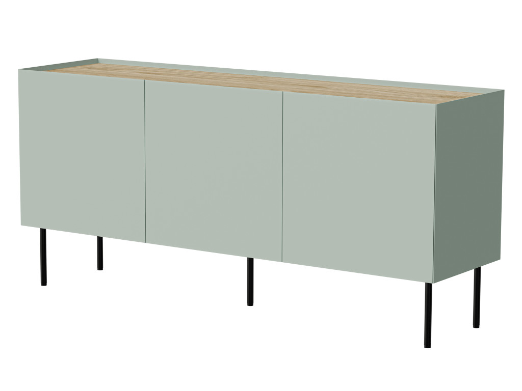 Stabilitu zabezpečujú kovové nožičky s výškou 20 cm, ktoré dodávajú komode moderný charakter a zároveň uľahčujú udržiavanie čistoty pod nábytkom. Vrchná doska v dekore dub olejovaný prináša do priestoru príjemný prírodný akcent.