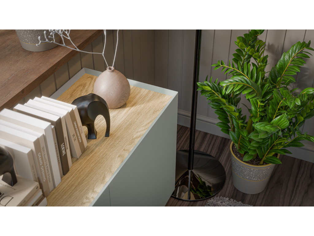 Táto komoda Fellini 150 – zelená kombinuje elegantný dizajn, praktickosť a moderné spracovanie. Vďaka svojej neutrálnej farbe a štýlovému detailu v dekore dub olejovaný sa dokonale hodí do moderných aj prírodne ladených interiérov.