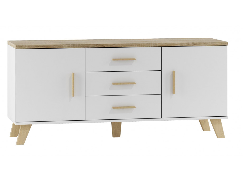 Biela komoda na dubových nožičkách Lotus 2D3S zažiari v modernom interiéru. Je vybavená veľkým úložným priestorom vďaka 4 policiam a 3 zásuvkám. Biele prevedenie v kombinácií s teplým odtieňom duba bude v interiéru pôsobiť škandinávskym dojmom.