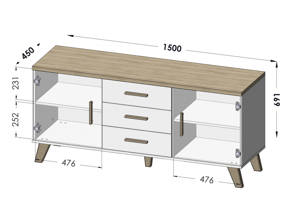 Komoda do obývačky Lotus 2D3S - dub